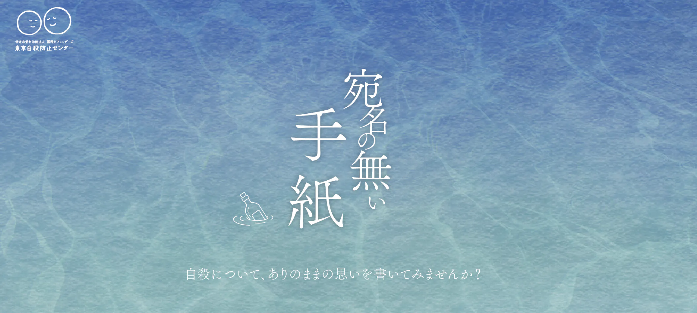 「宛名のない手紙」は、サイト内で悩みが投稿できる、掲示板のようなページです。ボトルシップを海に流すように、自身の思いをコメントする事ができます。