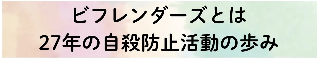 私たち「(認定)特定非営利活動法人 国際ビフレンダーズ東京自殺防止センター」は、世界40カ国以上で活動する国際ビフレンダーズの加盟団体として、日本では東京、大阪、愛知、宮崎で活動しています。無償ボランティアのビフレンダーが電話で話している間は”友達のように苦しむ人のそばにいること”を目指し、自殺を考えるほど孤独や絶望を感じている方々へ、夜間•365日、27年間寄り添う活動を続けてきました。東京以外でも全国から電話を受けています。