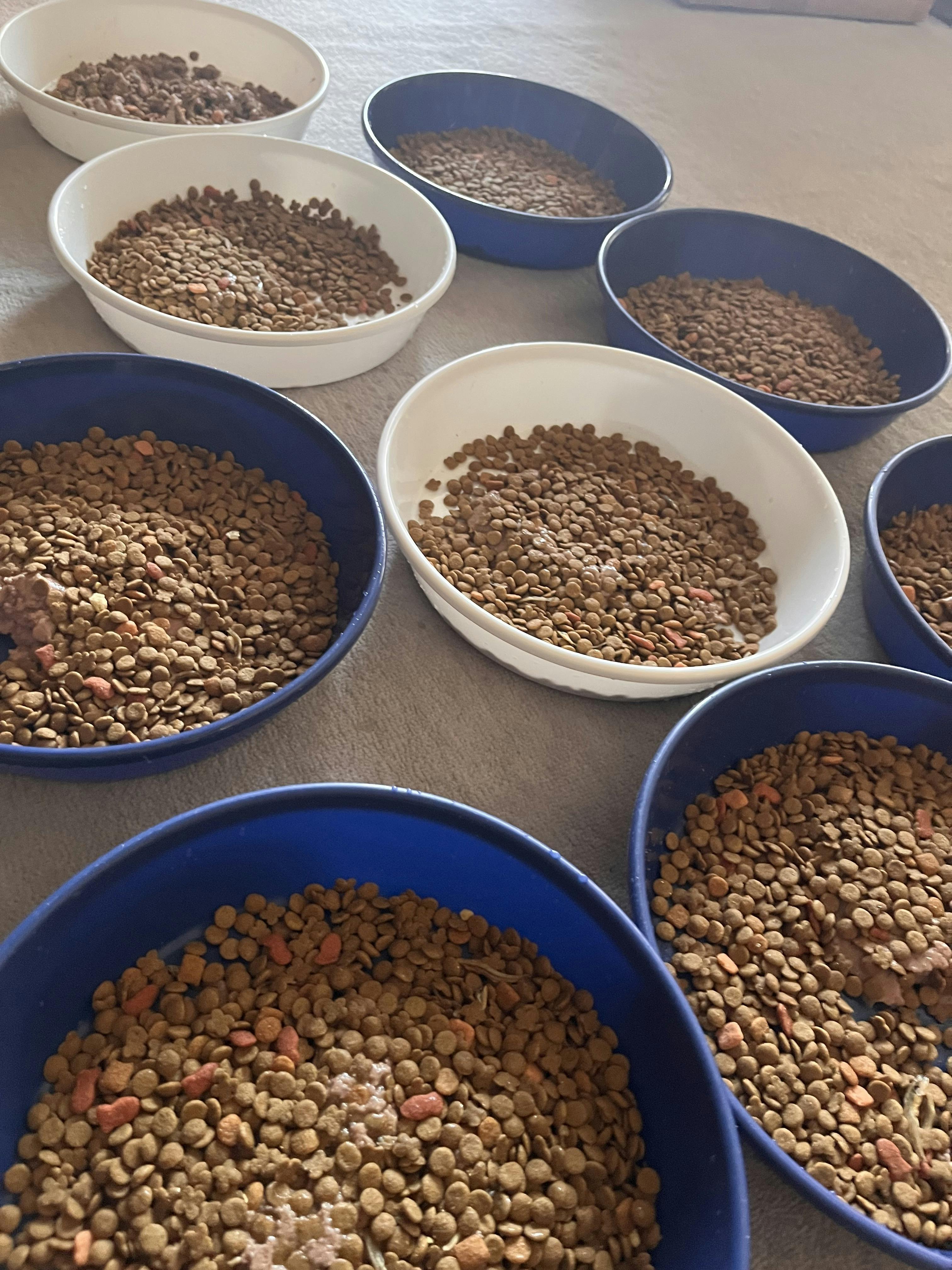 1日約2kgのカリカリとパウチ20袋を、猫たちは食べています。