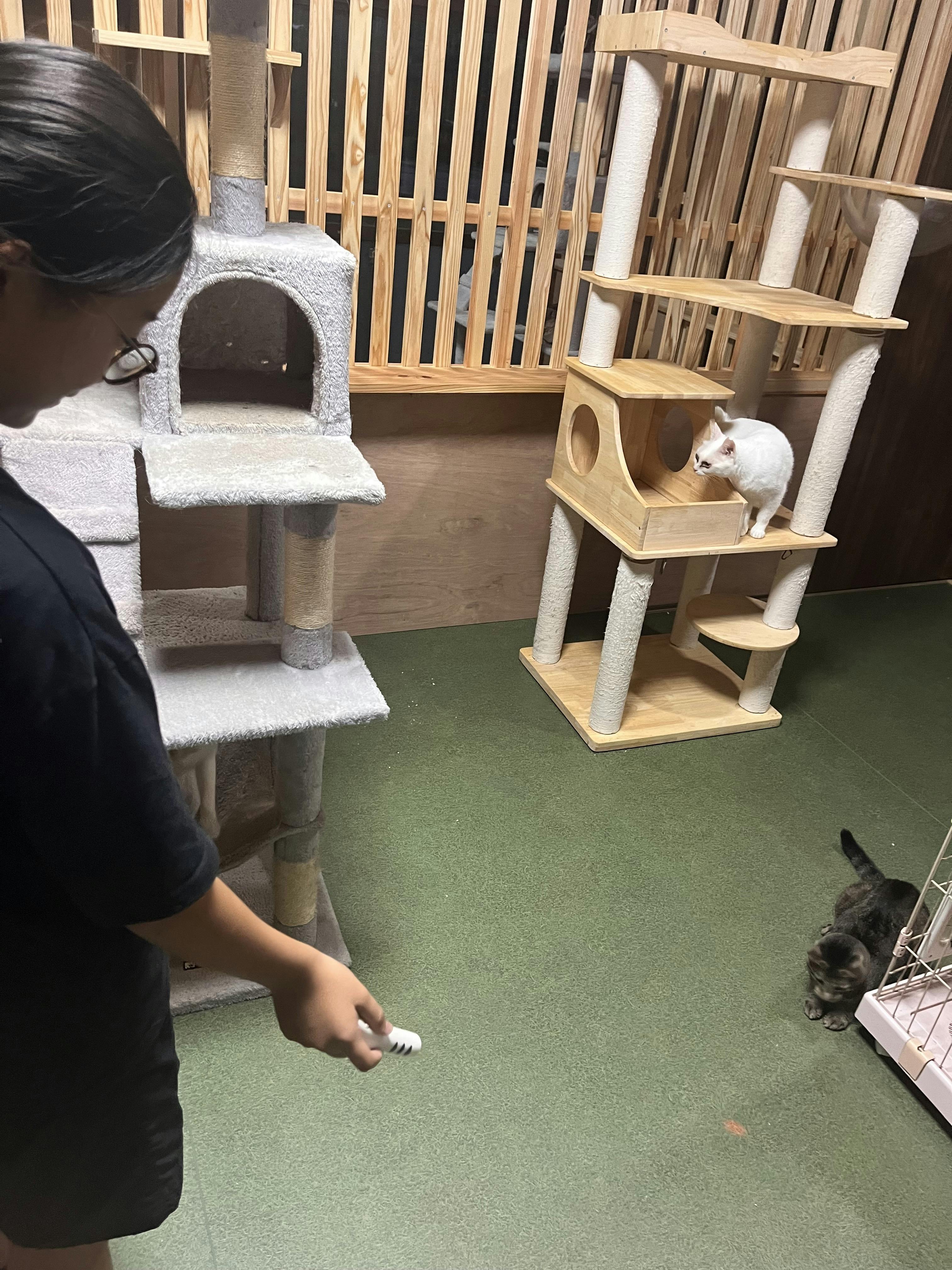 格子状の仕切り壁が出来て、とりあえずケージ生活からフリーになった猫ちゃんたち。