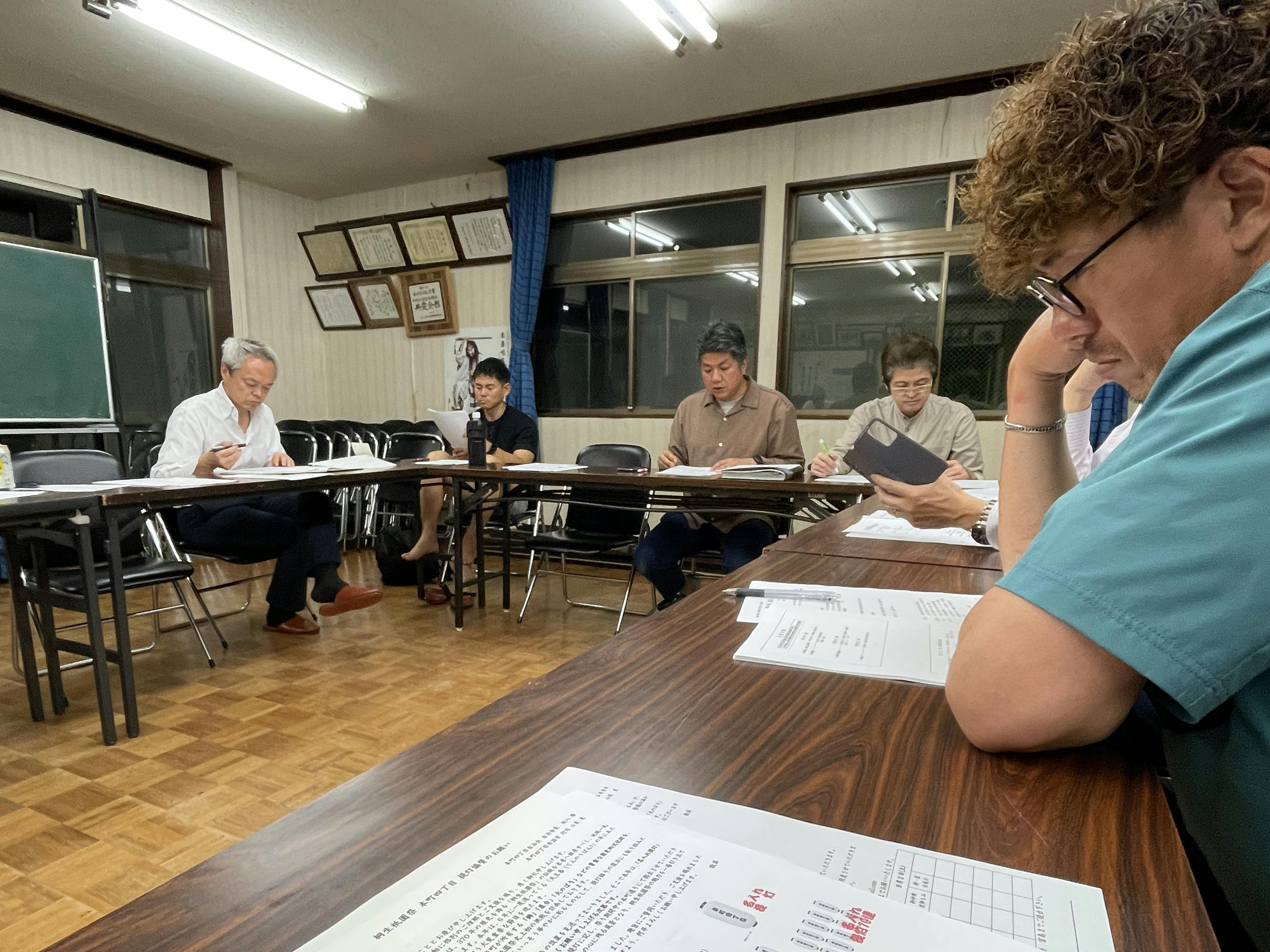 桐生市本町四丁目自治会には、祇園祭の伝統行事に従事する若衆の集まり「世話方(せわかた)」が存続しています。これも江戸時代後期から続くらしいです。そして世話方の若頭の事を「行司(ぎょうじ)」と呼び、祭り実行部隊の全てを司る総指揮官的存在を言いいます。行司も代々引き継がれて、今回天王番の行司を務めるのは、小泉充行司です。毎月定例的に総会が開かれて、小泉行司を中心に、お祭りの事前準備、日程の確認、当日の動き方の確認をしております。いよいよお祭りが始まるという感じです。伝統行事がスムーズに、事故や怪我がないように進めるために、若手もベテランも揃って、準備と確認を行っております。