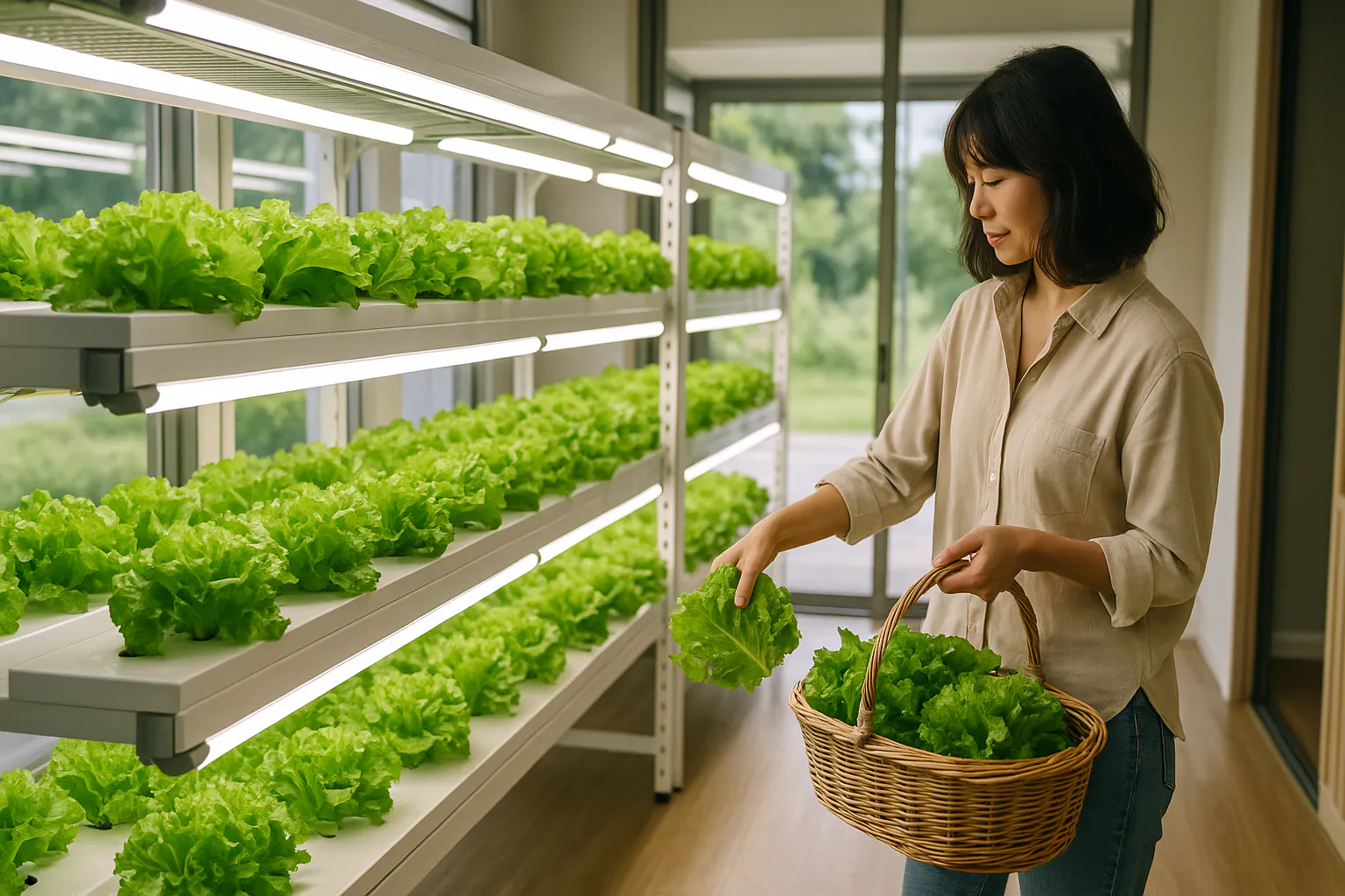 WEGEEは複数地域で試験的な水耕栽培システムを展開し、運用ノウハウや消費者の反応を蓄積してきました。使用するのは、光・水・養分を高精度で制御する最新のLED水耕栽培装置です。