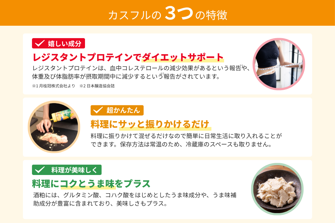 「カスフル」は、酒粕から作った、天然由来の健康調味料です。