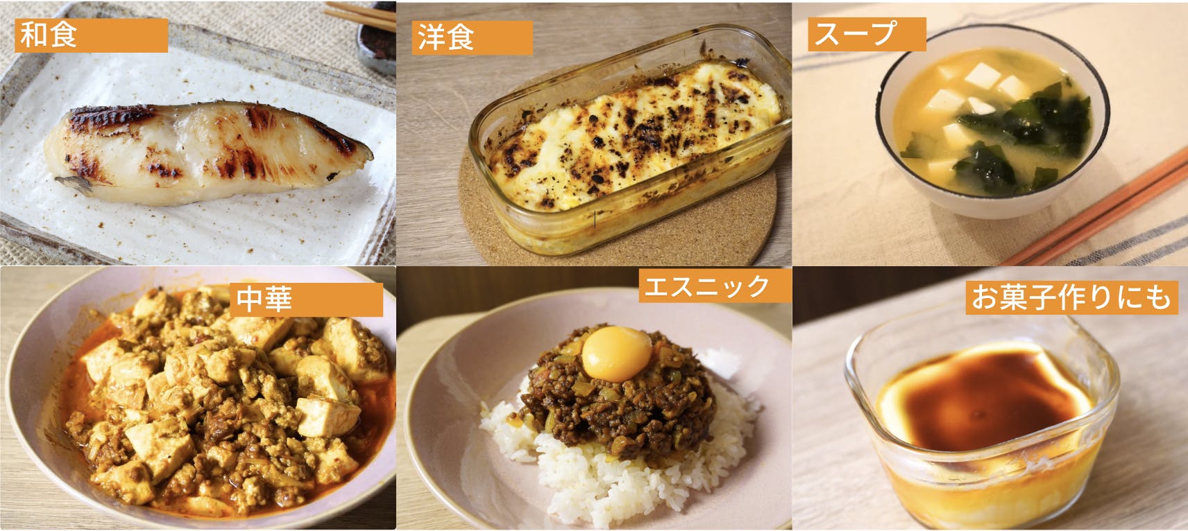 和食はもちろん、洋食・中華・エスニック、さらにはスイーツにまで幅広く使えます。
