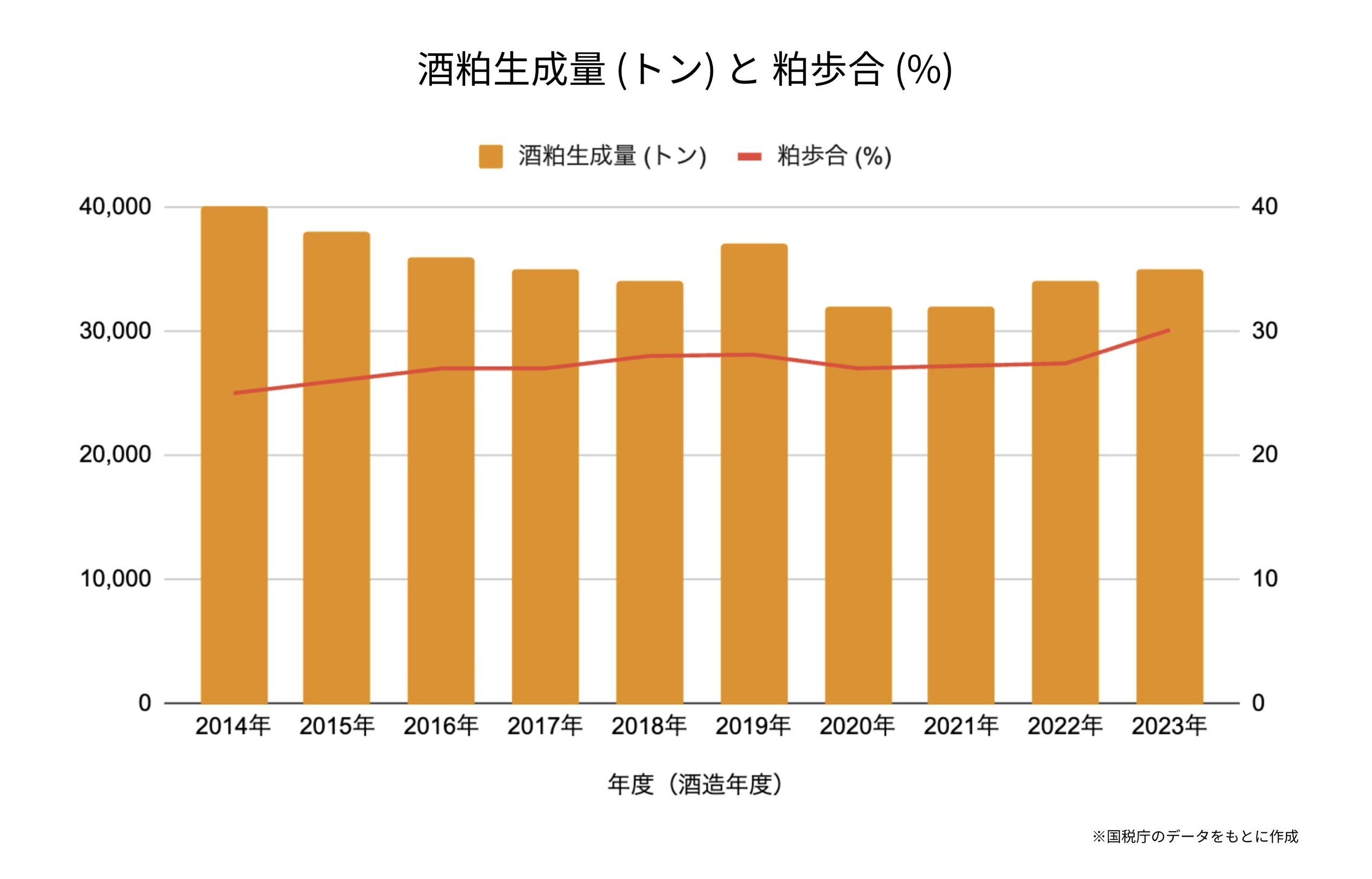 つまり、日本酒にならず酒粕として残る割合が増えており、全体としては減っているものの、1酒蔵単位でみると、酒粕の量は増えているんです。
