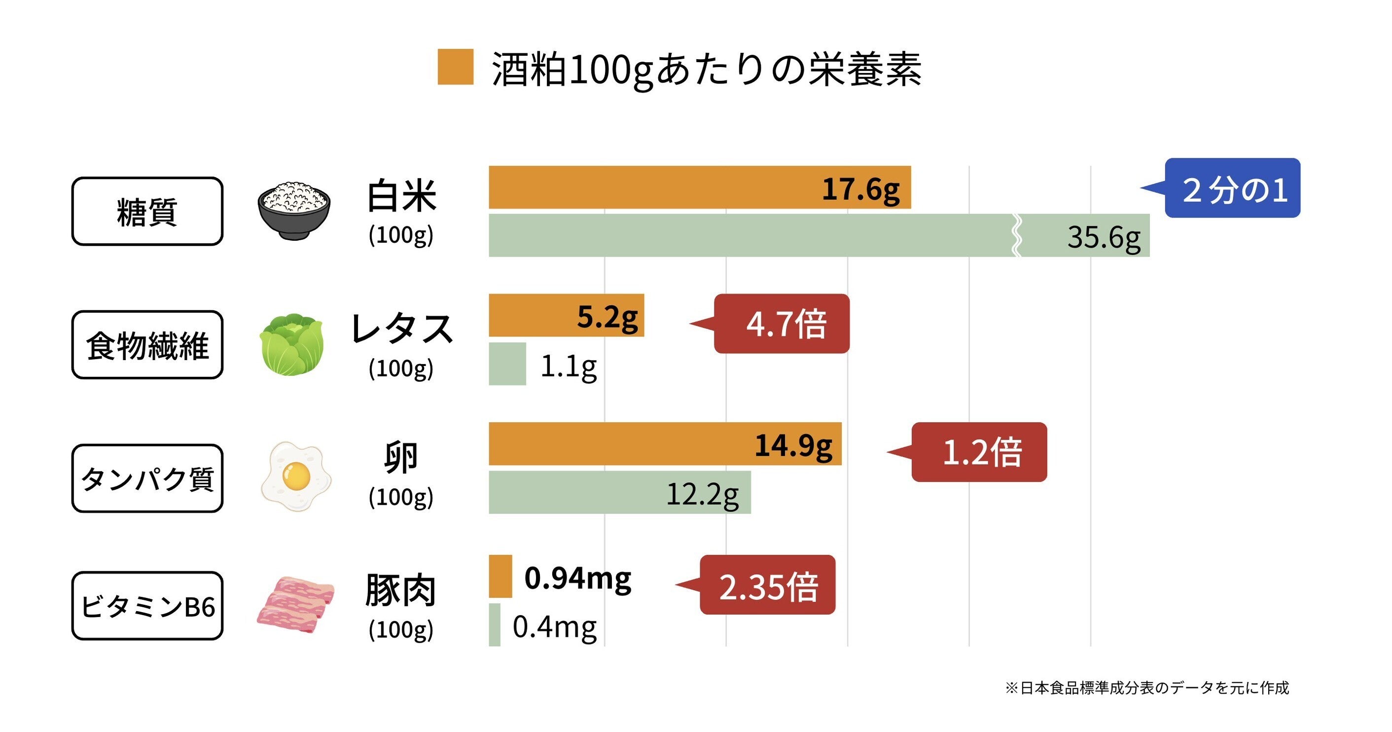 酒粕は、グルタミン酸、コハク酸をはじめとしたうま味成分が豊富で、料理にコクとうま味がプラスされます。