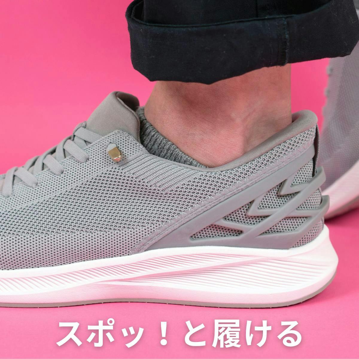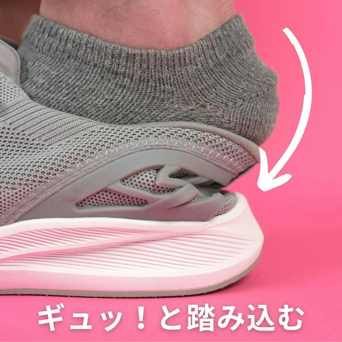 カカトを踏んで足を入れるだけでスポッとハマります。1秒で履けるから何度脱ぎ履きしても全く苦になりません!通勤、ウォーキングなどあらゆるシーンで抜群の「履きやすさ」と「履き心地」を生み出します。