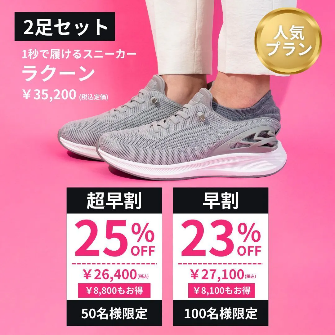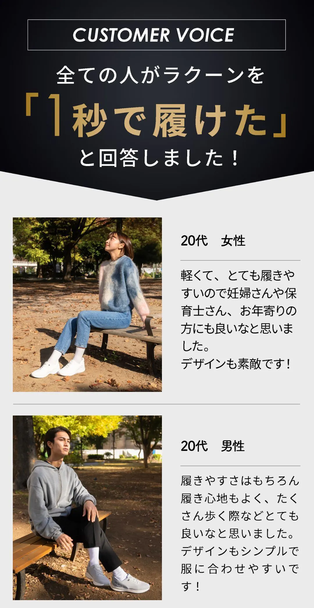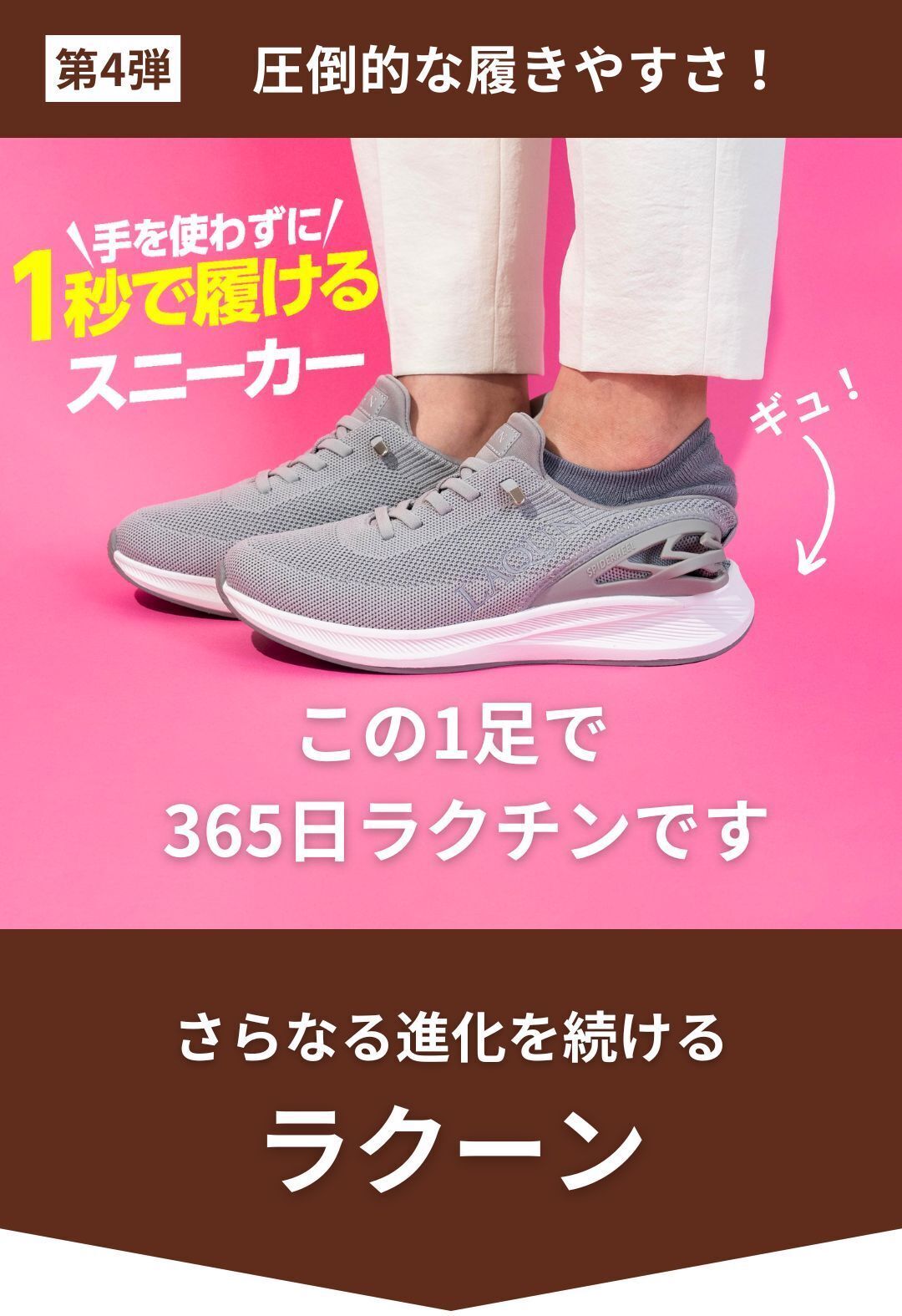 2023年にスタートした、1秒で履けるスニーカー「LAQUN(ラクーン)」多くの方からご好評の声をいただいております。