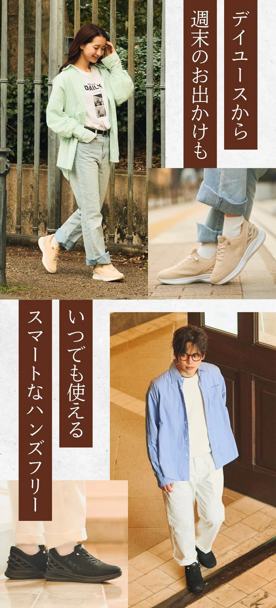 「誰でも簡単に履けるシンプルなスニーカー」のコンセプトから始まったこのプロジェクトは企画から、プロトタイプの開発など試行錯誤を重ね、社内チーム一丸となって開発しました。「靴」を通じて、皆さまの人生をもっと豊かにします!