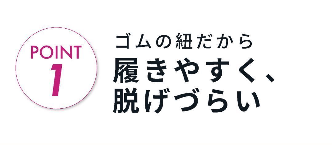 ①ゴムの靴紐が脱ぎ履きの際に伸び縮みするからラクラク。