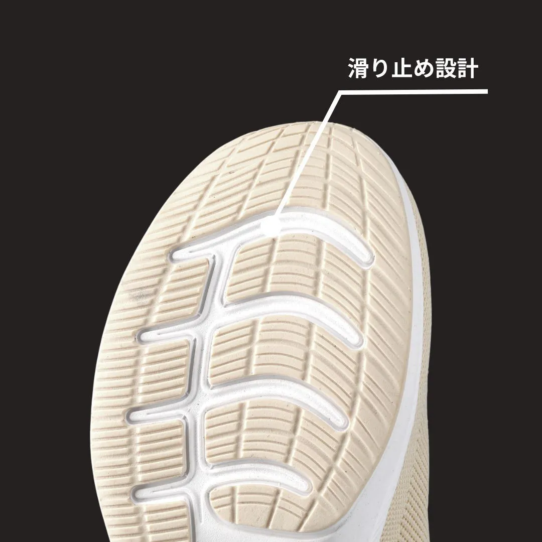 ①アウトソールは小さな溝がある設計で滑りにくい。