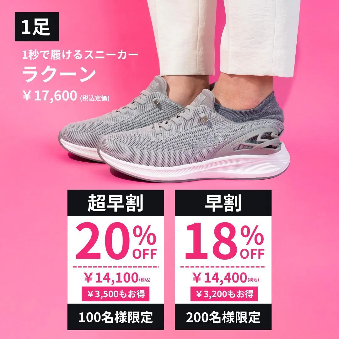1秒で履けるスニーカー「ラクーン」配送開始のご報告