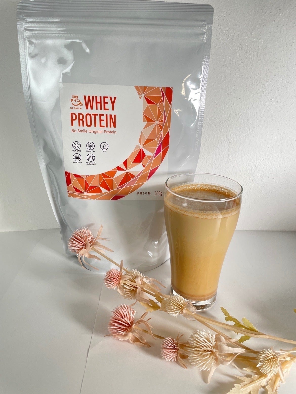 1食分で約15gのタンパク質を摂取できるホエイプロテインで、ミネラルやビタミン類、MCTパウダーなどを配合し、日常の栄養補給をサポートします。甘味料には有機アガベシュガーを使用し、やさしい甘さとまろやかさが特徴の黒糖きなこ風味に仕上げました。保存料、着色料、香料や人工甘味料は使用していないため、安心して継続していただけます。