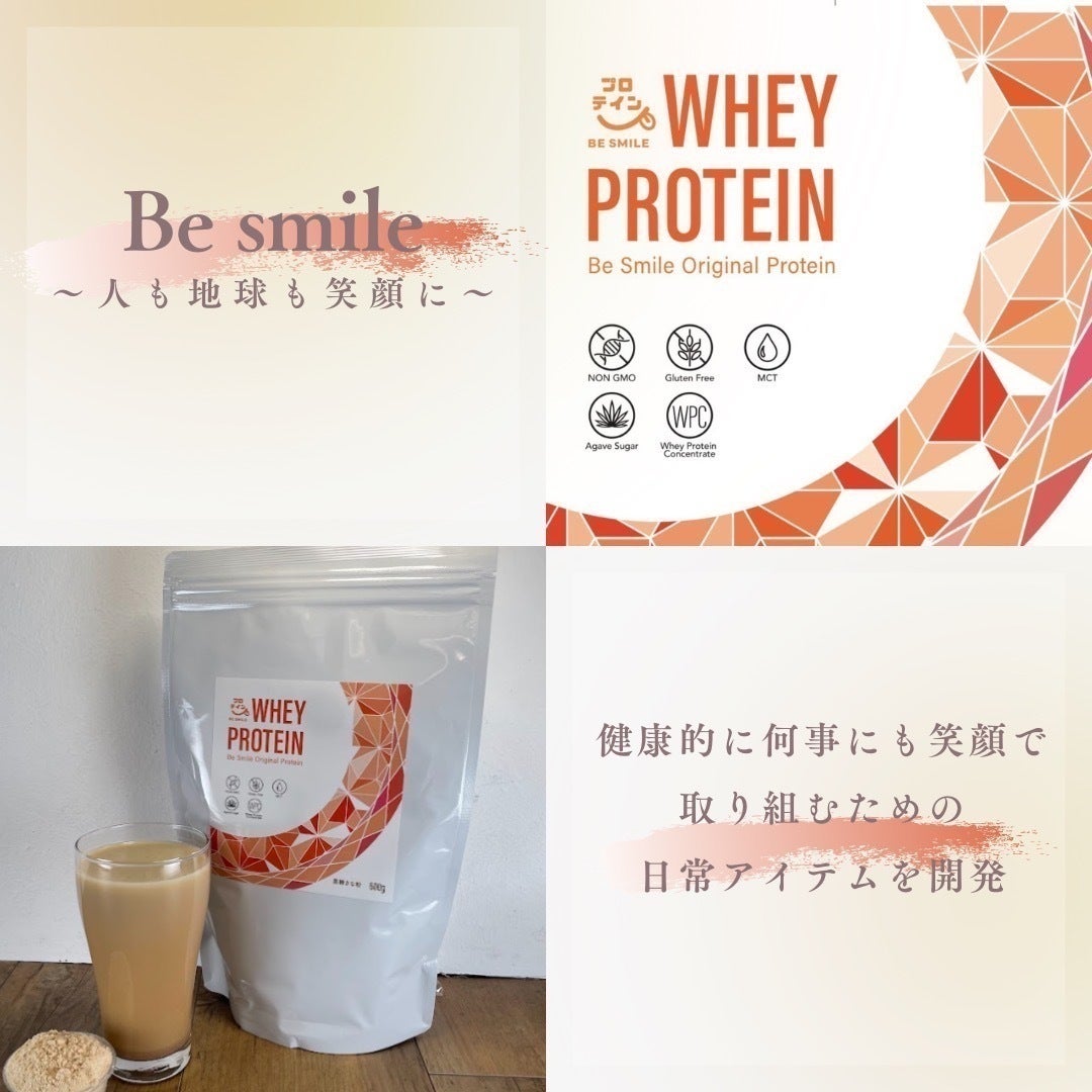 そこでこの度、「Be Smile~人も地球も笑顔に~」プロジェクトの一環として、健康的に何事にも笑顔で取り組むための日常アイテム「Be Smile オリジナルプロテイン」を開発いたしました。
