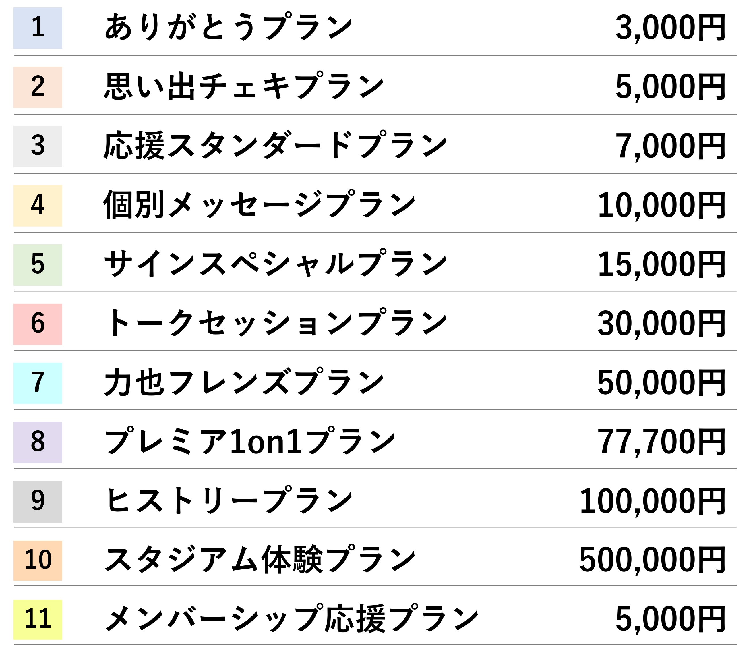支援いただいた皆さまへは、金額に応じて以下のようなリターンをご用意します。