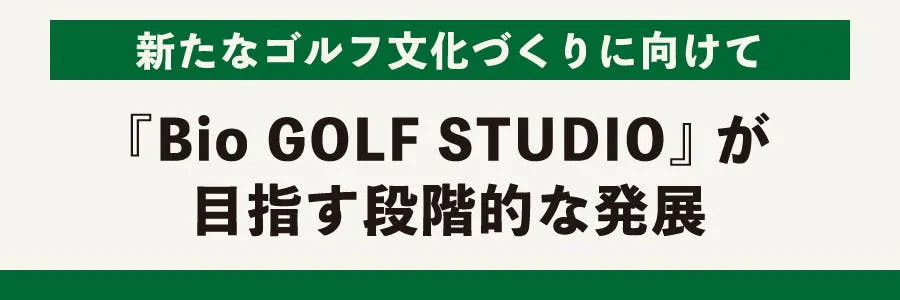 『Bio GOLF STUDIO』をきっかけに、ゴルファーやゴルフ場などのネットワークを構築・拡大し、企業や自治体も巻き込んでいくことで、ゴルフ人口の安定化・増加を目指していきたいと考えています。