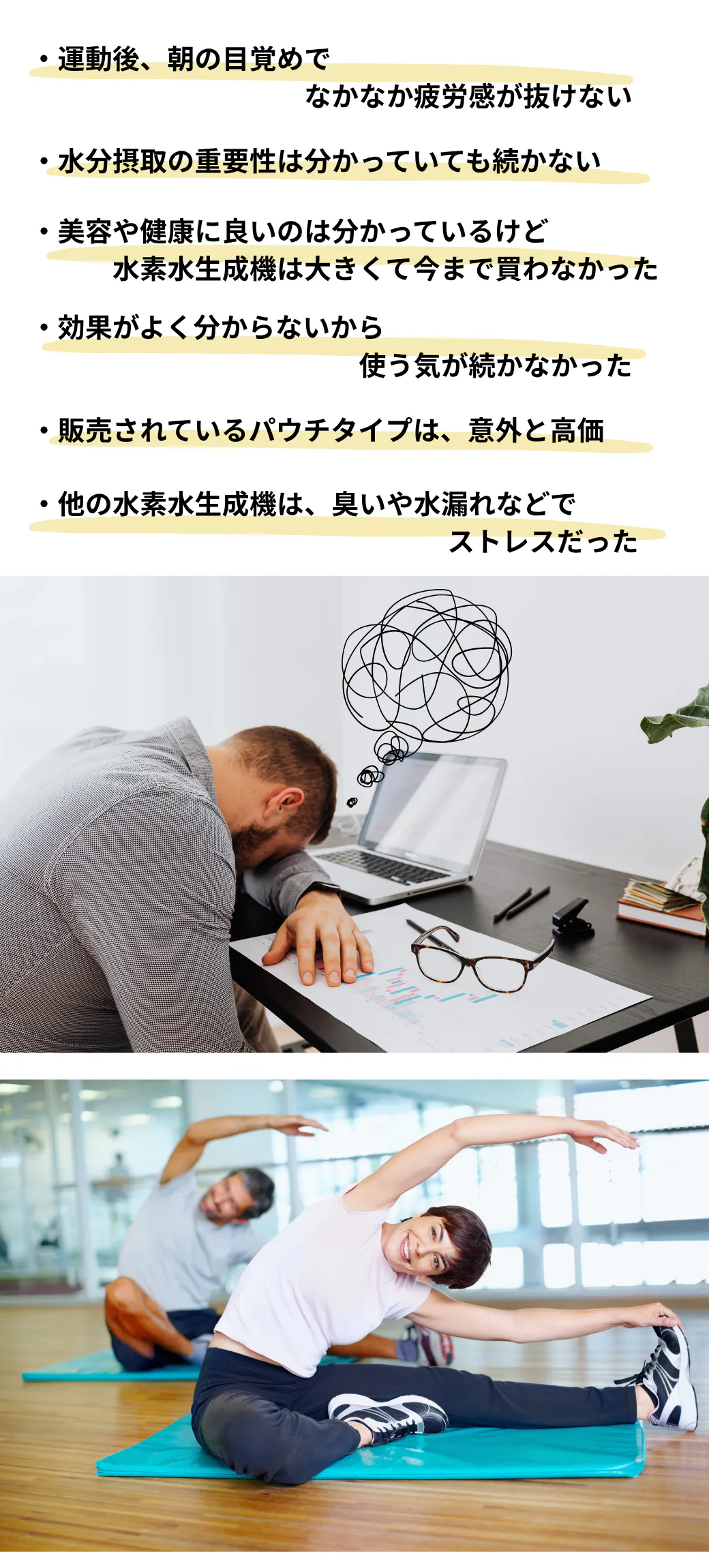 「H2 Clear」を販売した経緯につきましては、「忙しい毎日でも、無理なく健康を続けられる習慣を届けたい」という思いから、この水素水生成ボトルの企画をスタートしました。