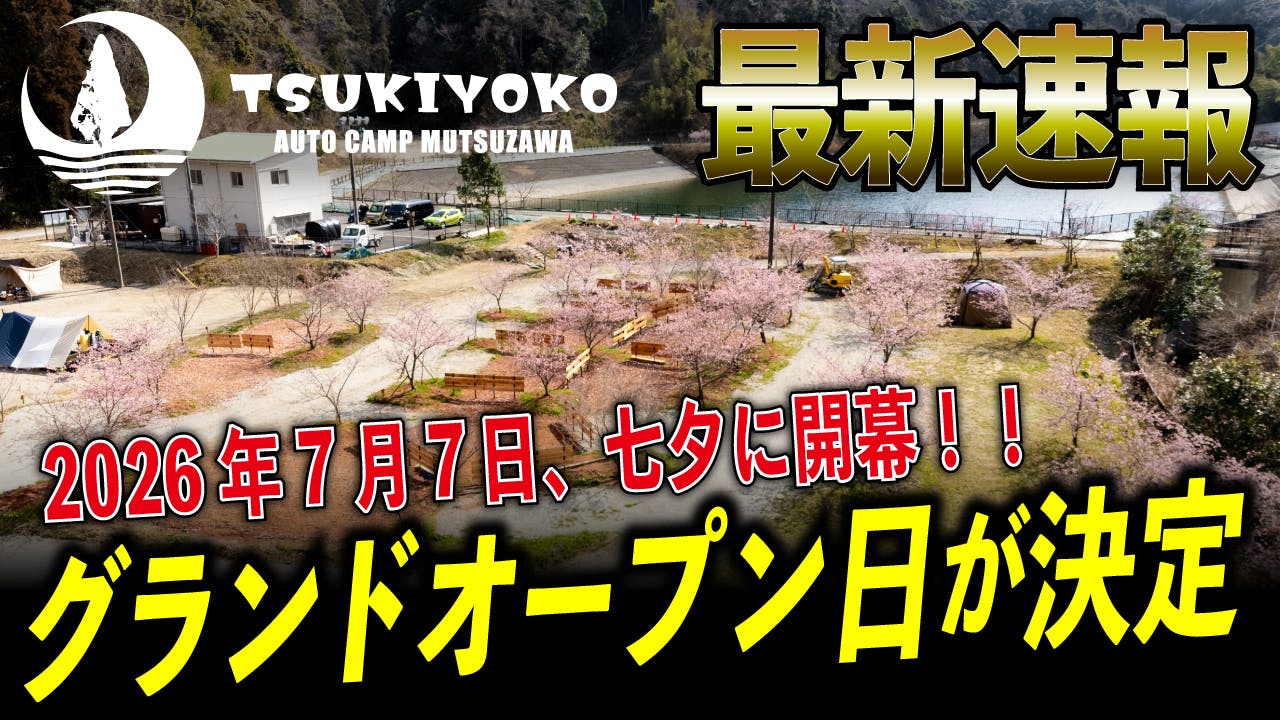 2026/02/25 18:00いつも温かいご支援、そして力強い応援を本当にありがとうございます。月夜湖むつざわオートキャンプ場プロジェクトは、皆さまの想いと共に、着実に前進しています。本日は大切なご報告があります。このたび、月夜湖むつざわオートキャンプ場のグランドオープン日を「七夕・7月7日」に正式決定いたしました。詳細はYoutube動画でお伝えします▼https://youtu.be/3tad30wo290プロジェクト立ち上げ当初から、「単なる新しいキャンプ場をつくる」のではなく、“これからの時代に必要とされる場所”をつくることを目標にしてきました。湖の静けさ、夜の深さ、そして月の存在感。月夜湖という名前には、「夜」と「月」という二つの象徴が込められています。夜は、日常の喧騒から離れ、自分自身と向き合える時間。月は、暗闇の中でも確かにそこにあり、優しく照らす存在。七夕という日は、願いを込める日であると同時に、特別な夜を象徴する日でもあります。“月夜湖”が本格的に動き出す日に、これ以上ふさわしいタイミングはないと感じ、この日を選びました。現在の進捗ですが、造成工事およびサイト整備は最終段階に入り、管理棟や共用設備の細部調整そして追加設備の工事などを行っております。炊事場の使いやすさの再チェック、トイレや水回りの動線確認など、実際に利用する方の視点で何度も見直しを重ねています。そして重要なお知らせとして、プレオープンは現在も継続して実施しています。プレオープン期間中に実際にご利用いただいた皆さまからのご意見・ご感想は、すべて現場に反映しています。机上の設計ではなく、「実際の声」をもとに修正と改善を繰り返す。このプロセスこそが、月夜湖をより良い場所に育てるための大切な時間だと考えています。グランドオープンは完成の合図ではありません。むしろ、本当のスタートラインです。クラウドファンディングで支えてくださった皆さまは、単なる利用者ではなく、この場所を一緒につくってきた“当事者”です。皆さまの応援がなければ、ここまで来ることはできませんでした。湖畔に静かに広がる夜。月明かりの下で揺れる焚き火。家族や仲間と交わす何気ない会話。そんな時間が積み重なり、この場所が「思い出の湖」になっていく。その始まりが、七夕です。引き続き、予約開始情報やリターンに関する詳細、設備完成状況などは随時ご報告していきます。最後の仕上げまで一切妥協せず、責任を持って進めてまいります。七夕の夜、月夜湖で皆さまとお会いできることを心から楽しみにしています。これからも、この挑戦を一緒に見守っていただければ幸いです。 もっと見る3月予約解放!2月は河津桜の開花シーズンとなります!