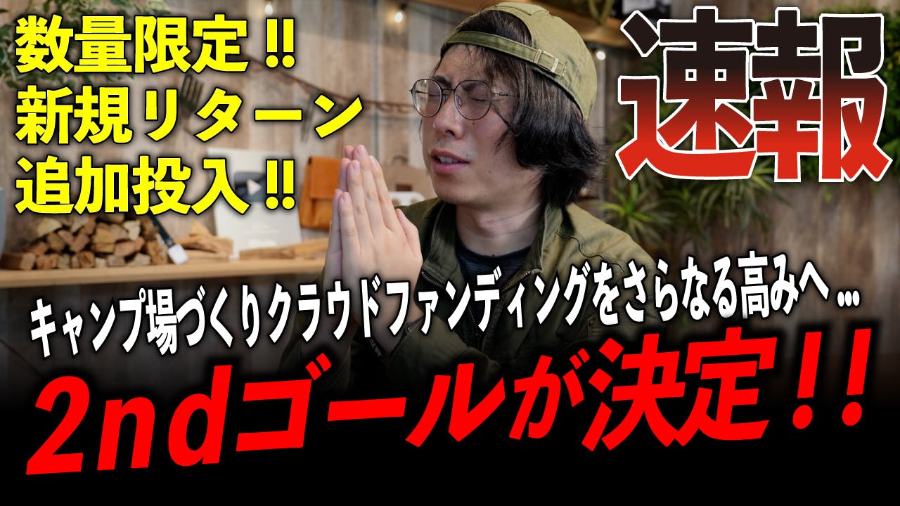 そして今回、私たちが掲げる「キャンプの新しいカタチ」を実現するため、『月夜湖むつざわオートキャンプ場』開発の次なる挑戦として、『2ndゴール』を設定することを緊急決定いたしました!