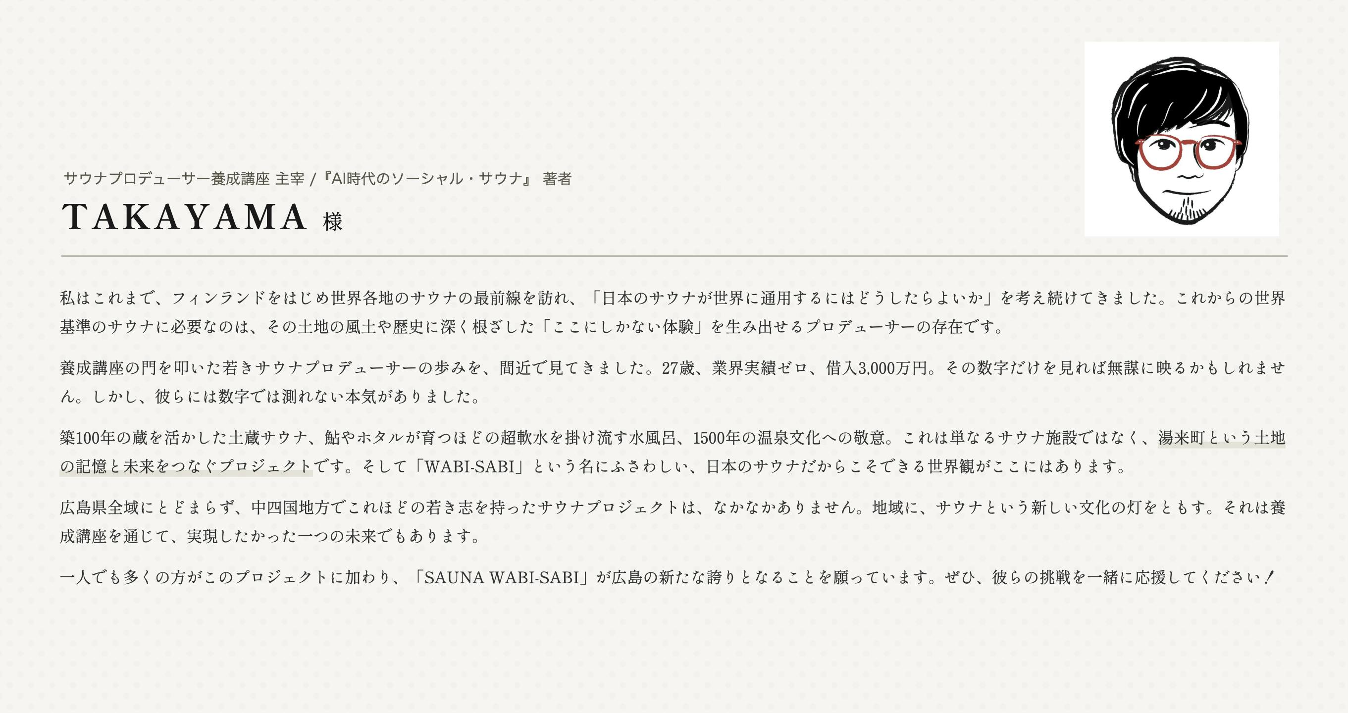 広島のサウナ文化を前に進め、湯来町の未来をともに築くために、良ければ力をお貸しください!