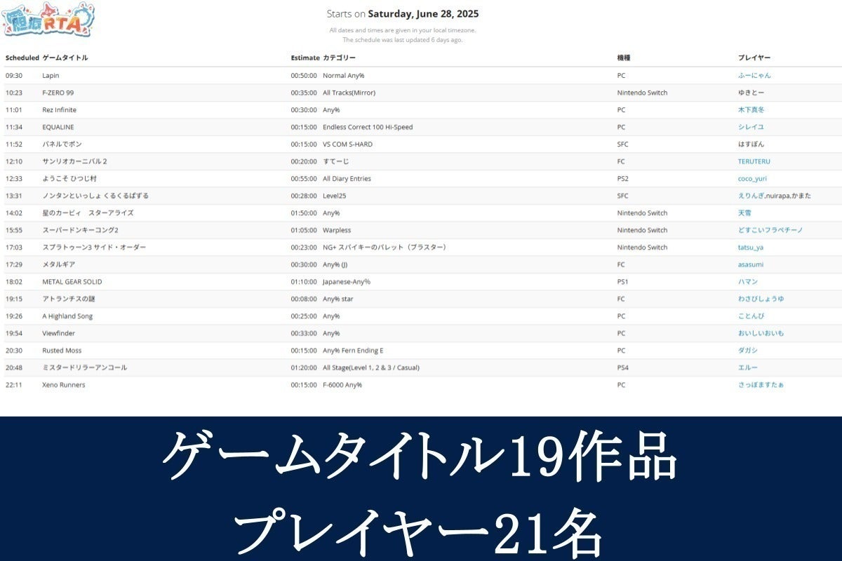 全国からプレイヤーを募集して、ゲームタイトル19作、プレイヤー21名が決定しています。