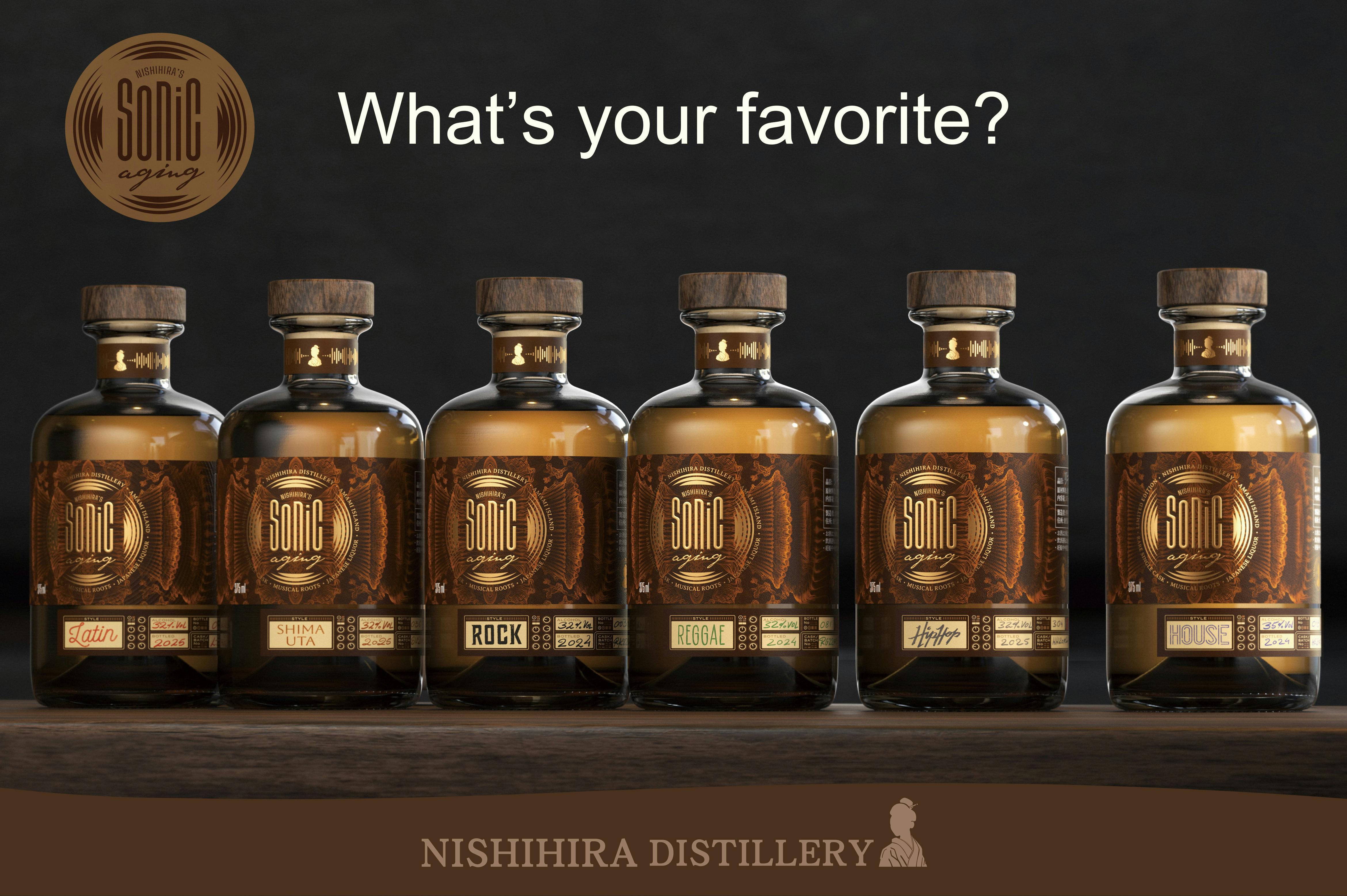 今回は、Rock、HOUSE、Hip Hop、シマウタ(奄美民謡)、ラテン音楽、レゲエの6種類の音楽を聴かせた「Sonic Aging」です。全て黒糖焼酎をベースにしたリキュールとして販売いたします。375ml、100ml、そして1樽(1本限定)、西平酒造応援プランをご用意しています。
