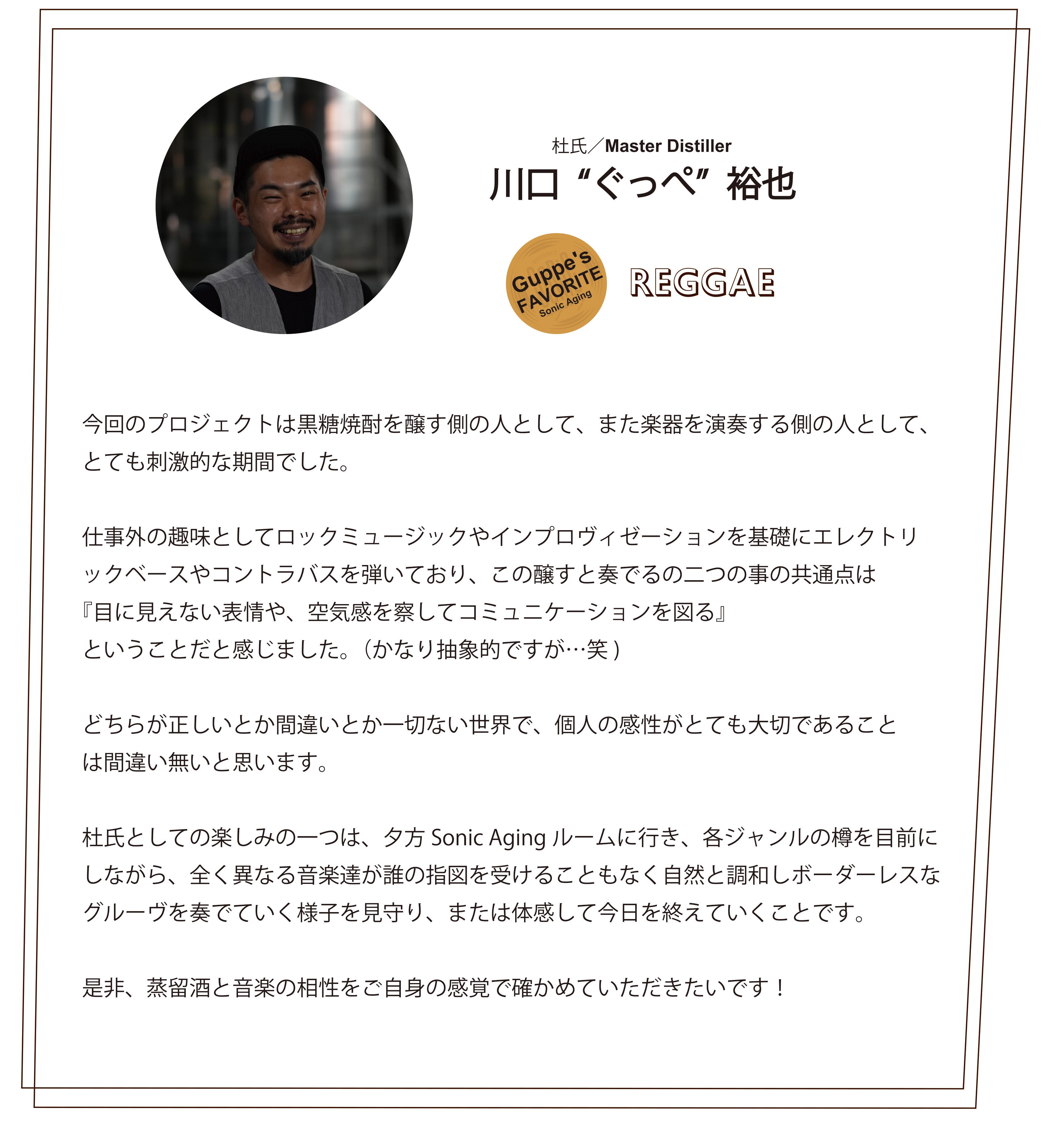 この奄美の伝統ある黒糖焼酎に、音楽の力が加わり、ついに「Sonic Aging」が完成しました!!