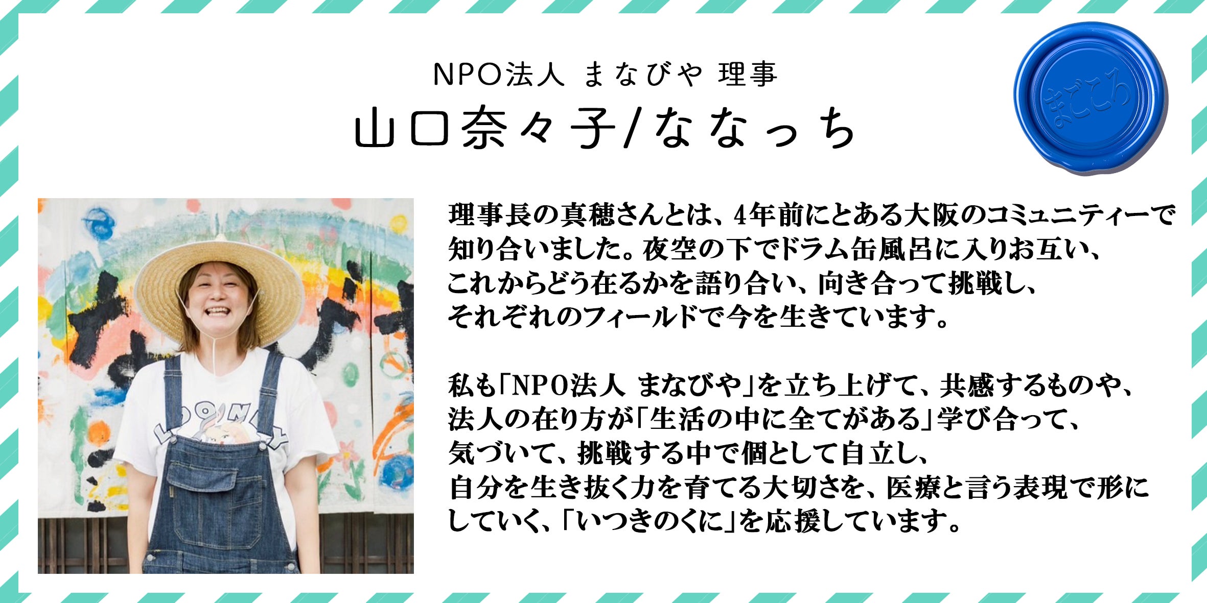 代表の真穂さんと出会い一緒に活動をしていく中で、自分の今までの活動は、「根本的な生きづらさの解消」にはなっていないということに気づく。生きづらさの解消には『その人自身の心のあり方』が大事。どんな辛い事象が起きたとしても、心のあり方で捉え方が変わってくる。その心のあり方は、その人自身が意識的に行動して暮らしていくことでしか、変容が起きないと感じるようになる。