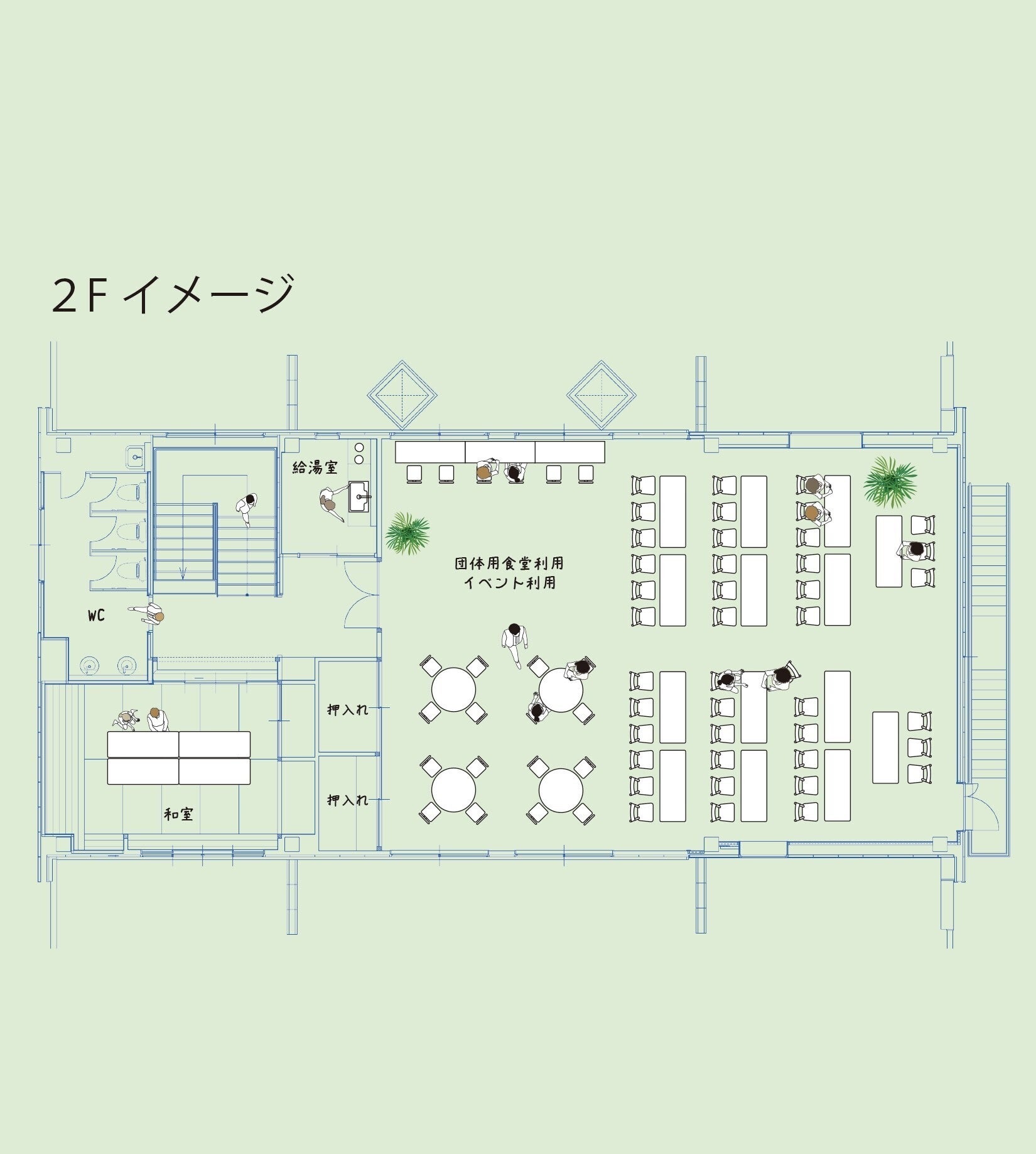 ●2階 団体用食堂スペース・イベントスペースの机・椅子・インテリア購入費(54席分)…100万円