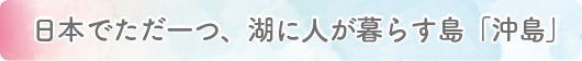 沖島での主な地場産業は淡水漁業で、びわ湖の水揚量の約4割を沖島が占めます。アユ、ビワマス、スジエビ、モロコ、ワカサギなど季節や魚に応じたいくつかの漁法で年間を通して漁業を行っており、地元では琵琶湖の魚のことを「湖魚(コギョ)」と言い、漁業の島として栄えてきました。