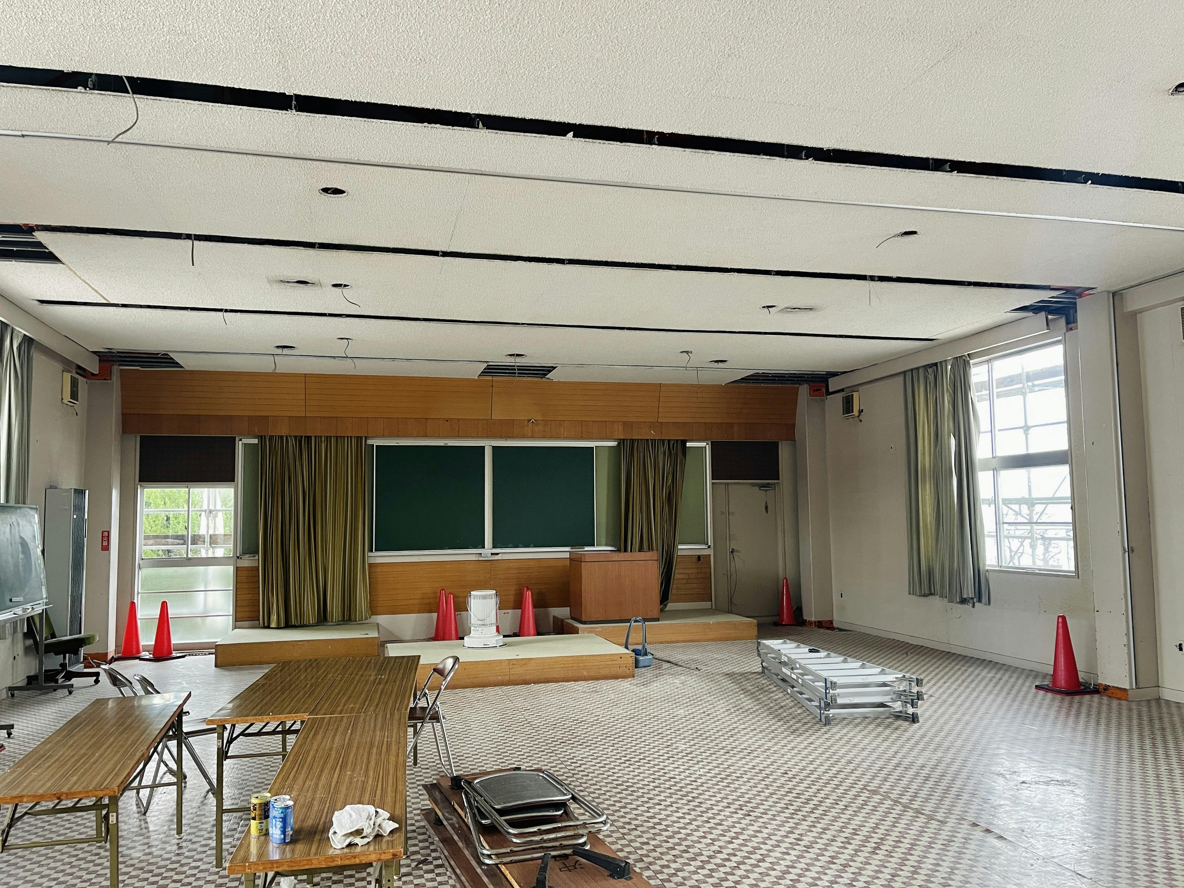 ので下準備として電気器具照明等の撤去、耐震工事に