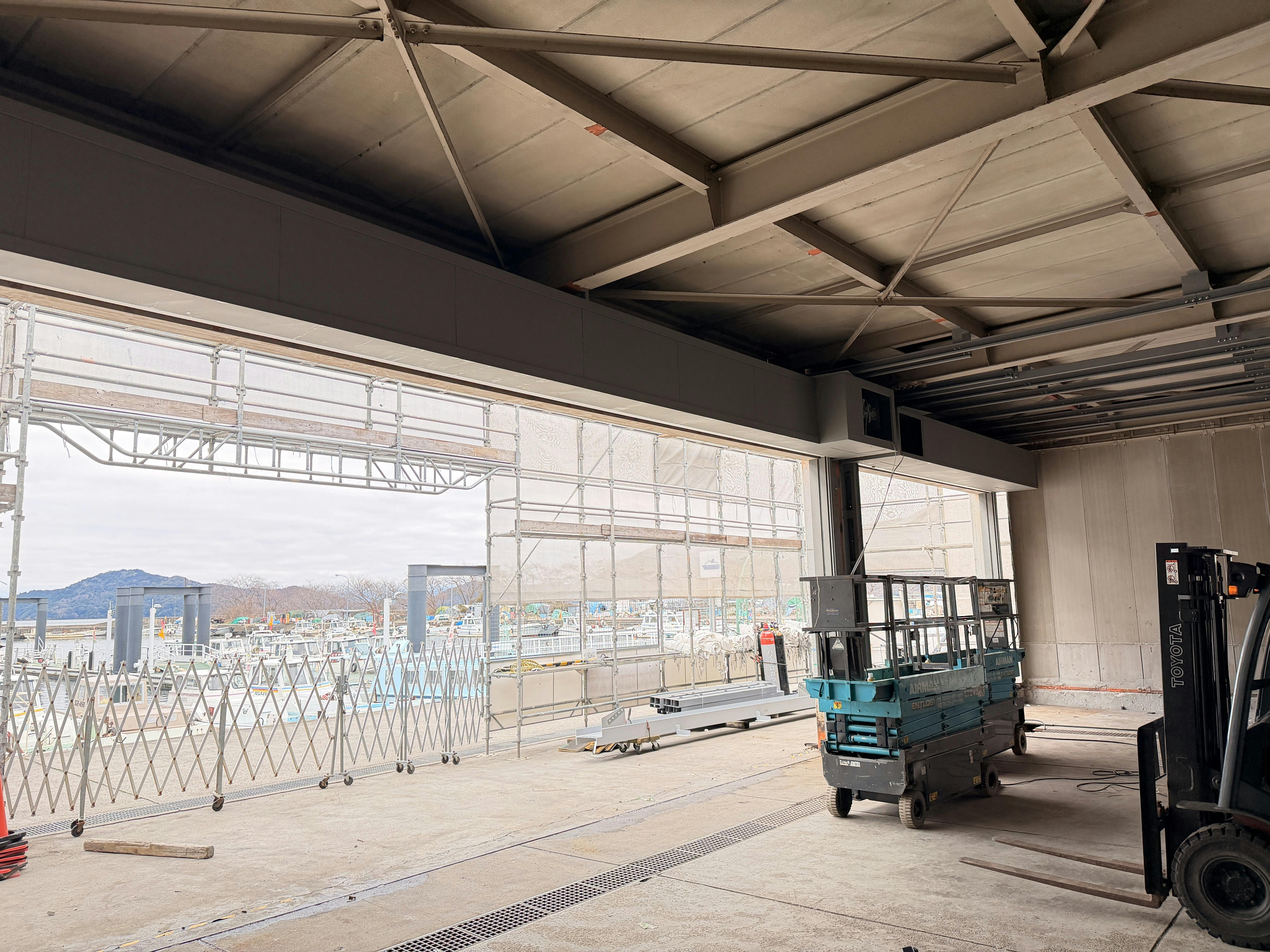 工事の進捗は、正面のシャッターが新しい安全なもの