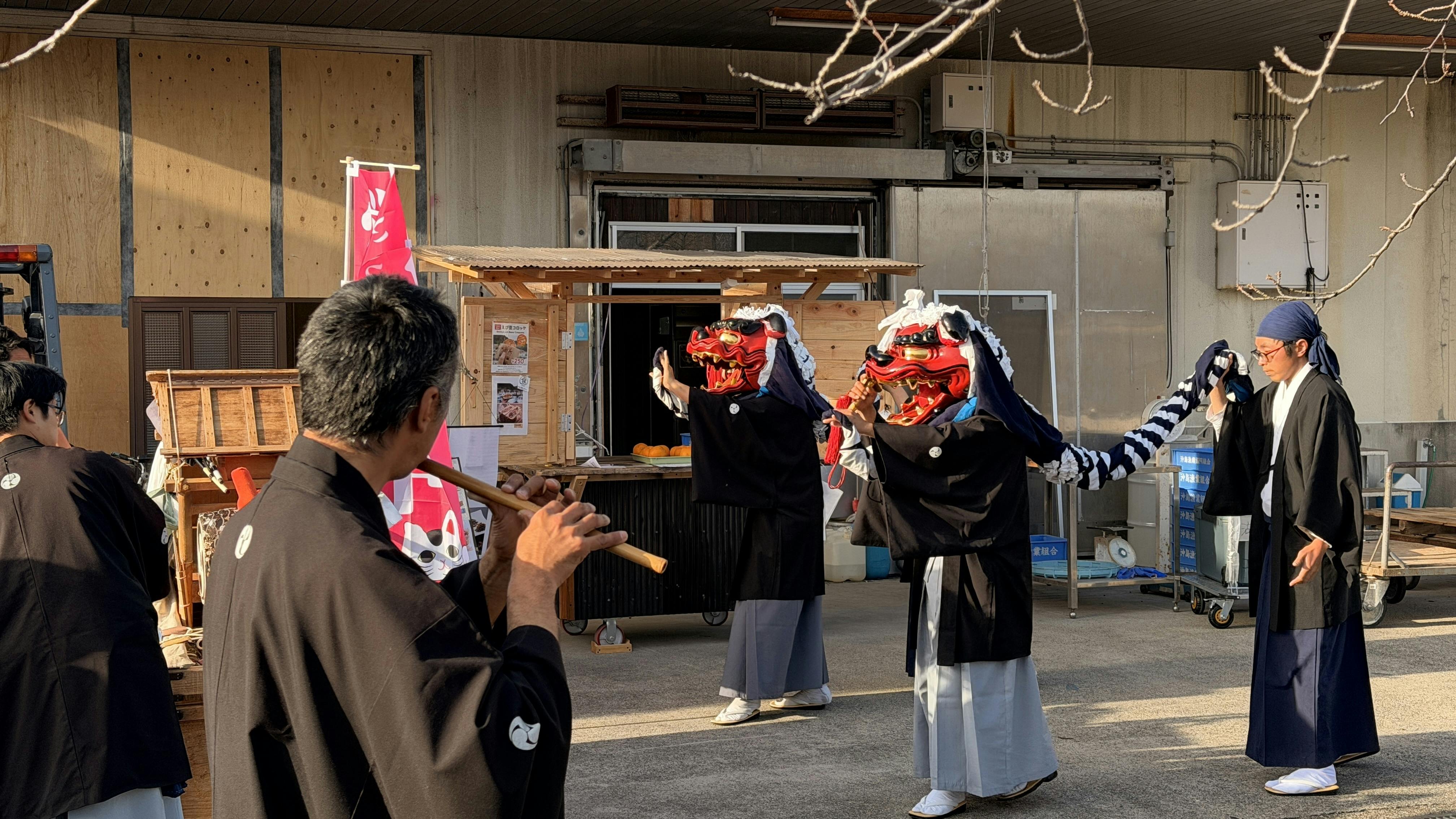 2月末には獅子舞が来てくださり、仮事務所と食堂の