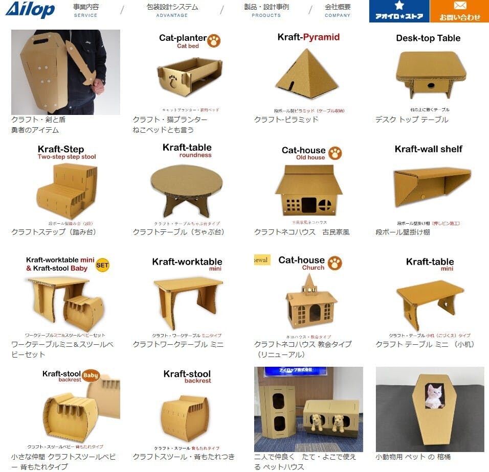 アイロップのオンラインストア「アオイロストア」では、段ボール製のネコハウスやデスクなども販売しております。アイロップの技術者が設計した工業包装のアイデアやノウハウをご家庭でもお楽しみいただけます。