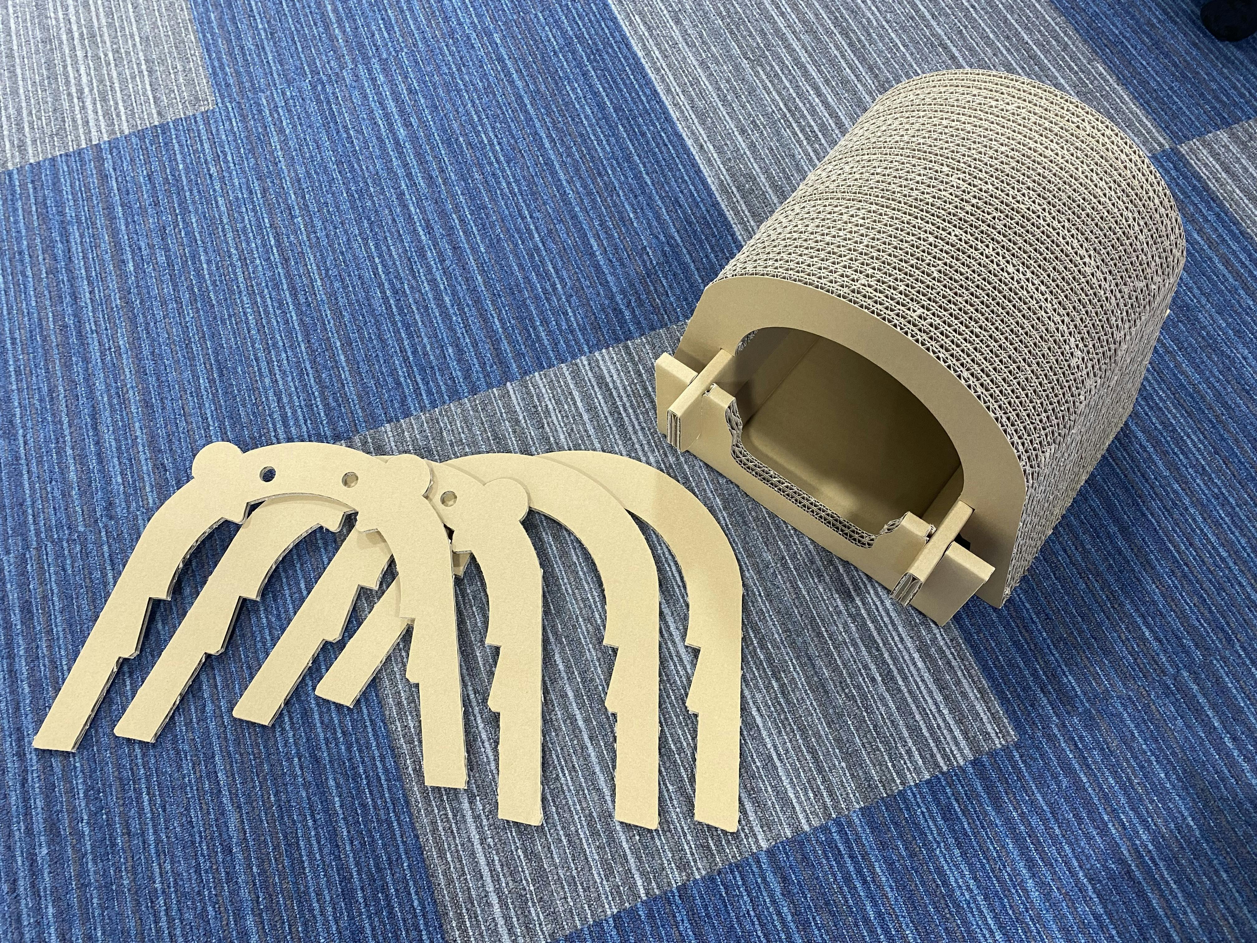 段ボールは、リサイクル率90%以上という地球環境保護にも貢献する素材です。私たちの包装仕様開発で鍛えた設計力で、段ボールを使った家具や、ペットのおもちゃの開発も行っています。