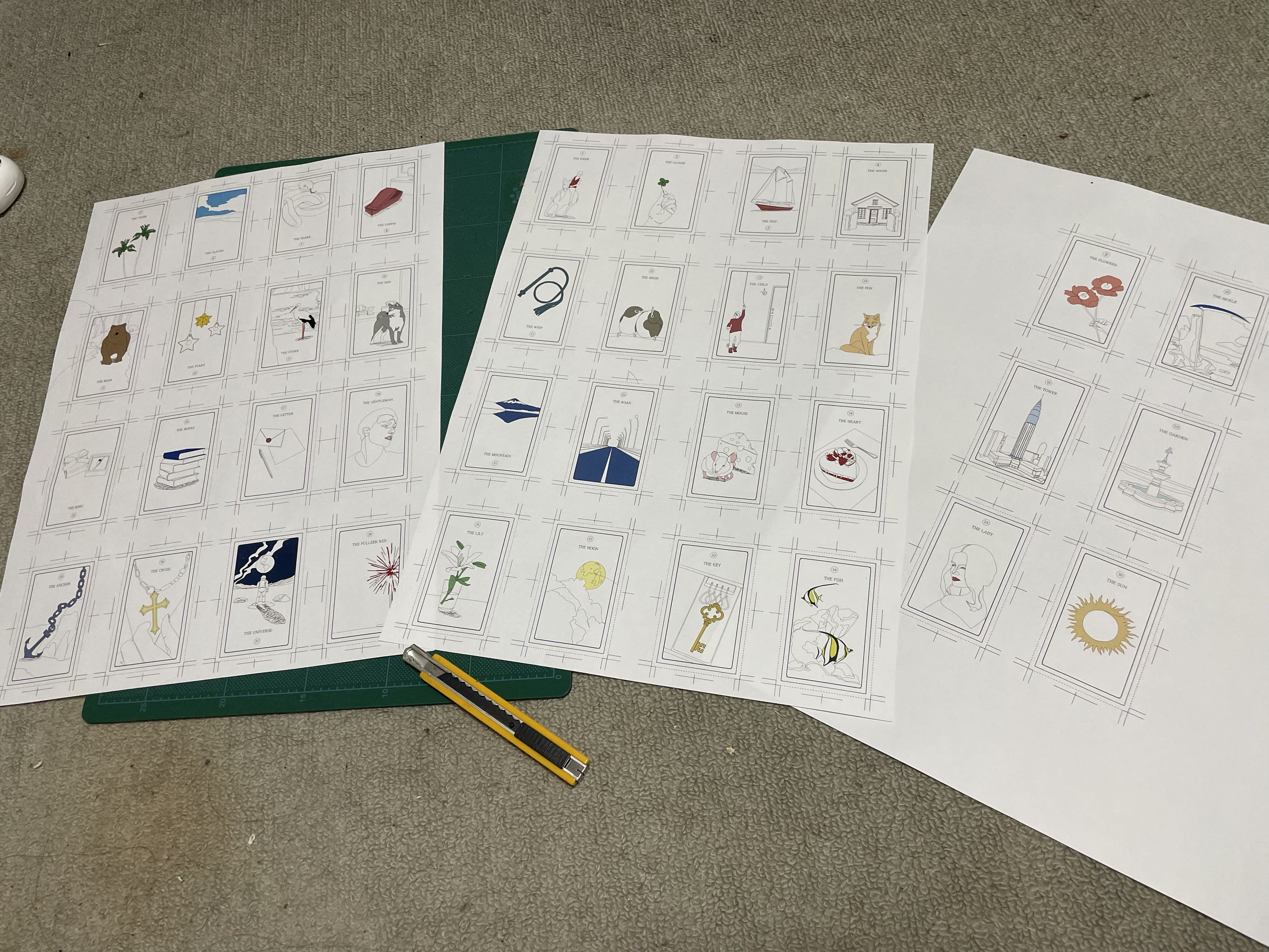 ・ルノルマンカードの遊び方を伝えるために、実際に印刷したカードを使って占い体験を準備中です。