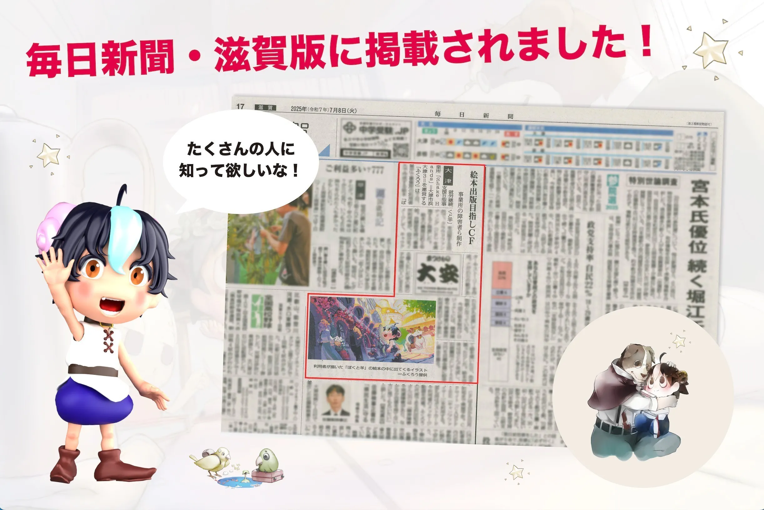 2025/07/11 17:00絵本『ぼくと羊』のクラウドファンディング始動が、7月8日(火)付の毎日新聞・滋賀版に掲載されました!このプロジェクトは、ShakeHandsが就労支援B型の現場から取り組むオリジナル絵本制作企画で、発達障がい・精神障がい・HSPなど“見えづらい生きづらさ”を抱えるメンバーたちが創作に参加しています。記事では、クラウドファンディングを通じて絵本出版を目指す背景や、表現活動が社会とのつながりになる過程が紹介され、メンバーによる描き下ろしイラストも掲載されています。クラウドファンディングはすでにスタートしています!ぜひ応援・拡散いただけるとうれしいです!!! もっと見る