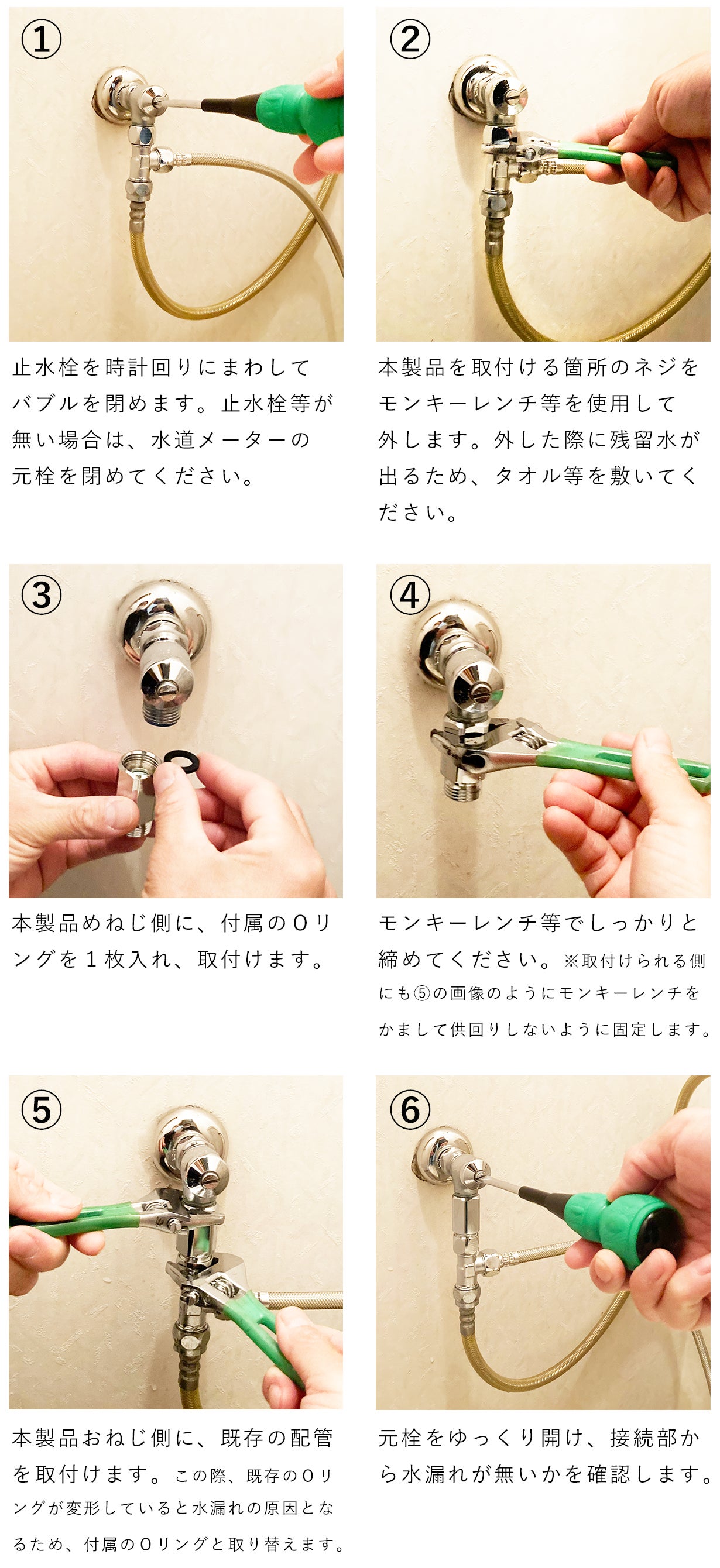 ※ご自身でのお取付けが困難な場合は、お近くの水道工事店様にご依頼(有料)いただけます。