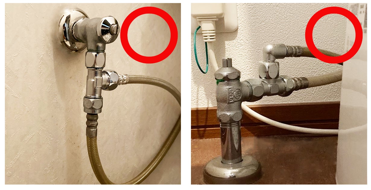 A.【取付可能】:止水栓(分岐栓)が、壁もしくは床から出ており、止水栓がネジ式になっているもの。
