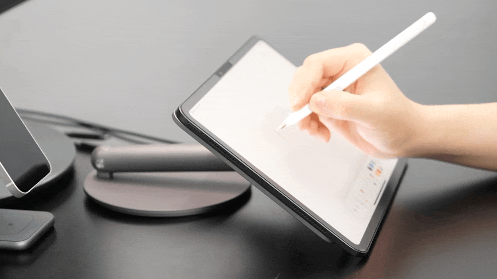 それは・・REDBEAN P2スタンドに内蔵されたポゴピンでワイヤレス充電をしながら、iPad本体のUSB-Cポートを活用する方法です!