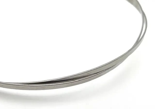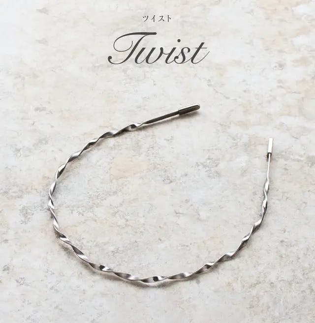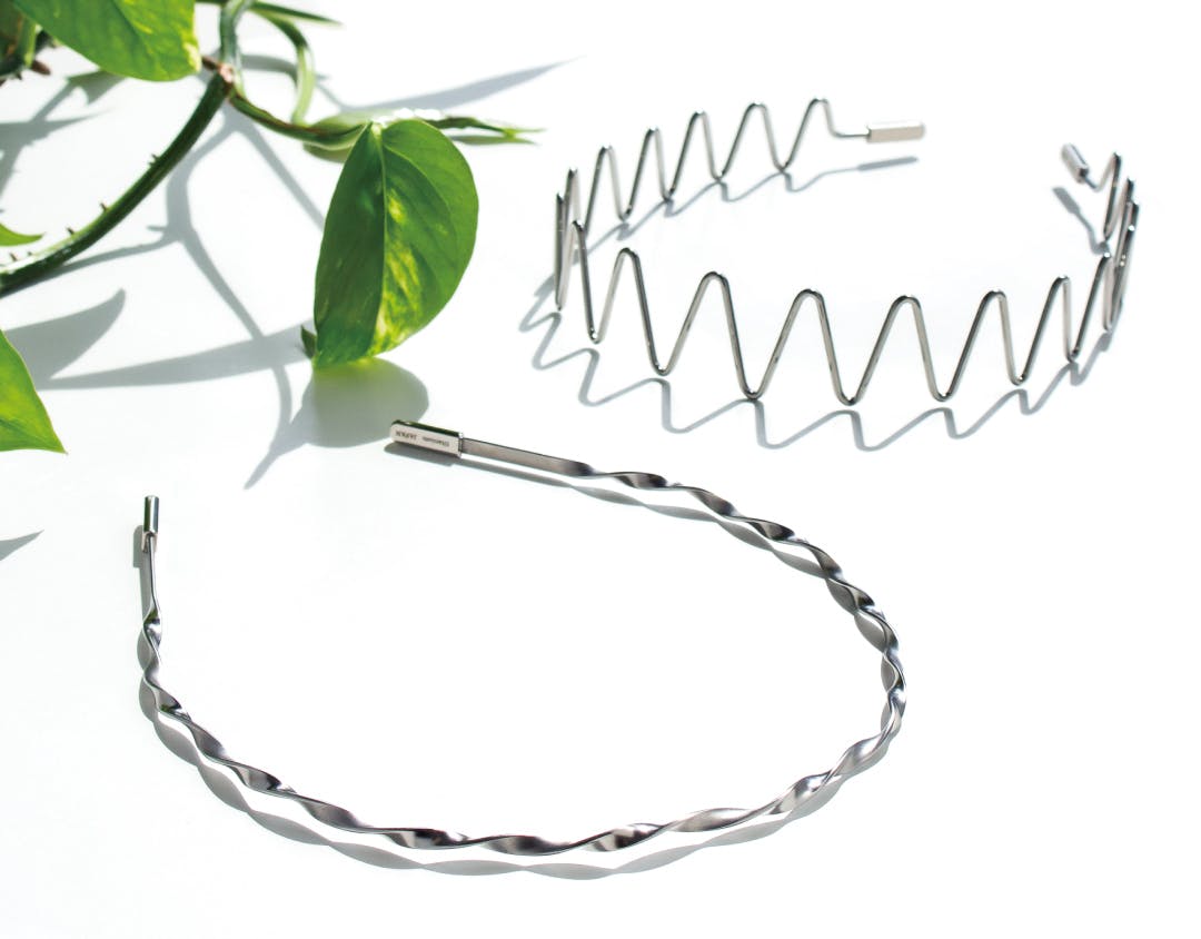 ワイヤー状のチタンとひと言に言っても、さまざまな種類があります。今回のヘアバンドもウェーブ、ツイストで異なるワイヤーを使用しています。