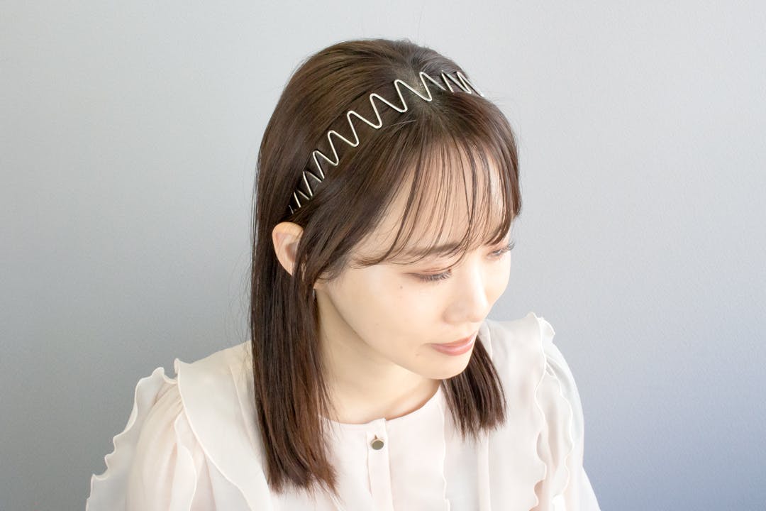 ジグザグのラインが印象的なデザインのウェーブ。顔まわりにアクセントを加えます。トップからサイドにかけて幅を徐々に細くすることで、デザイン性とフィット感を高めました。