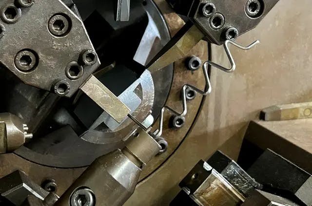 ウェーブはワイヤーをカットした後、機械で異なる幅を微調整しながら曲げること39回。この後も手作業で細かく修正を行います。