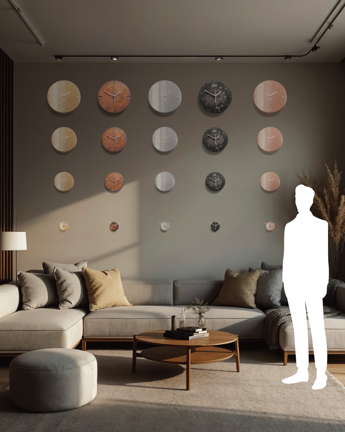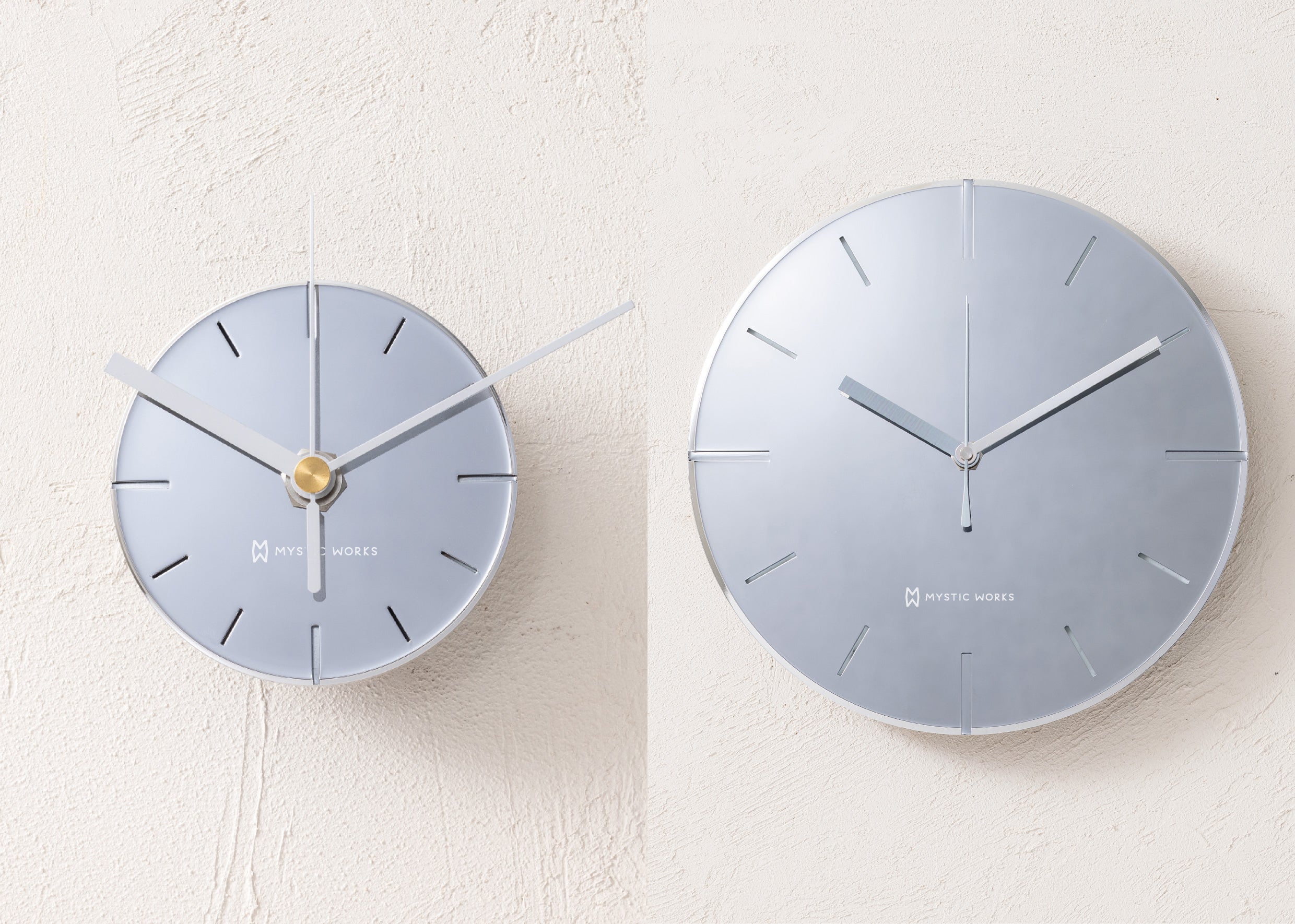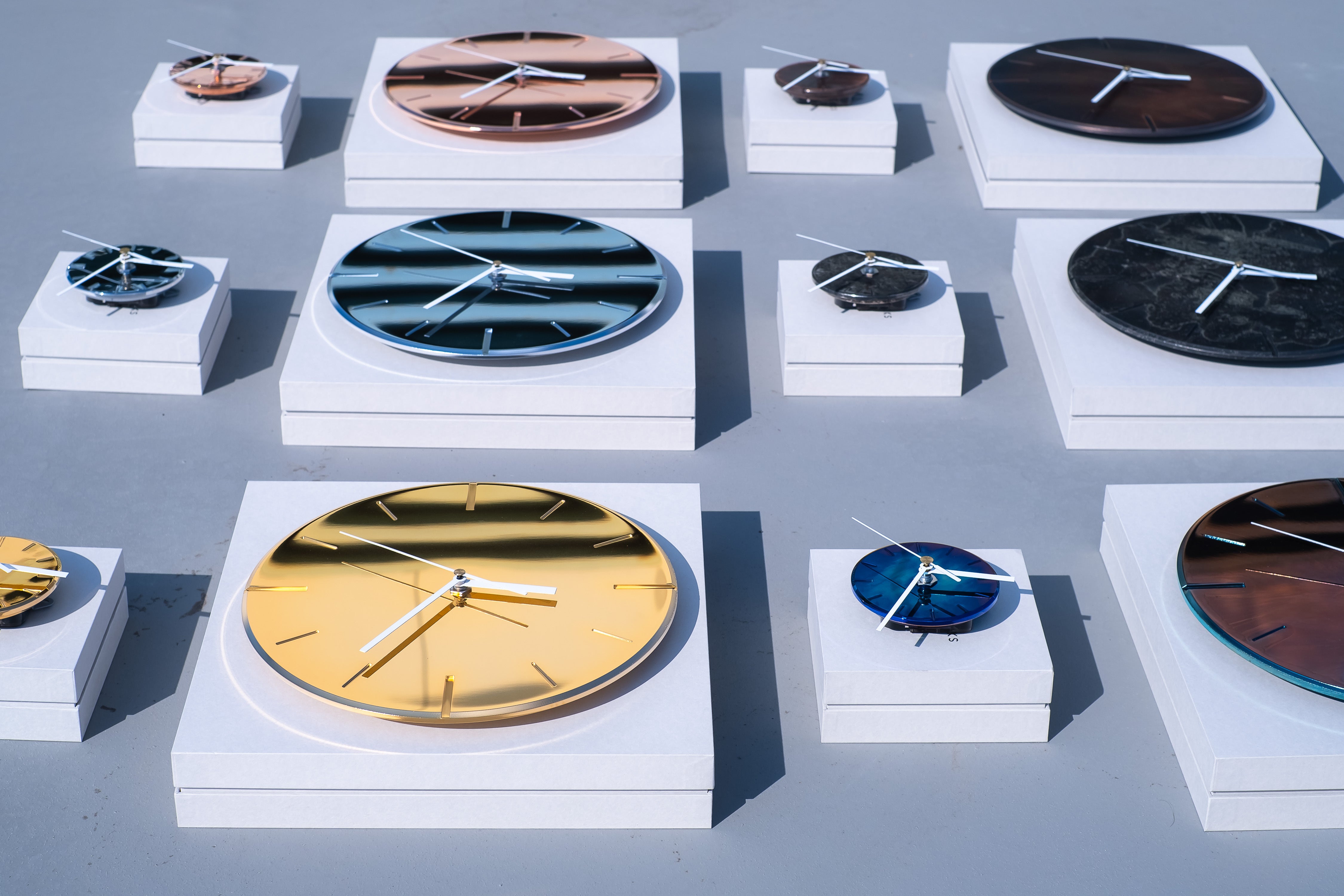 従来の時計が「時間を読む」ものであったのに対し、この時計は「光の変化=時の流れ」を感覚的に楽しむことができるアイテムです。表面仕上げによって異なる各カラーの光の反射や質感を楽しめ、インテリアに自然になじみながら、光の角度や強さによって様々な表情を見せます。