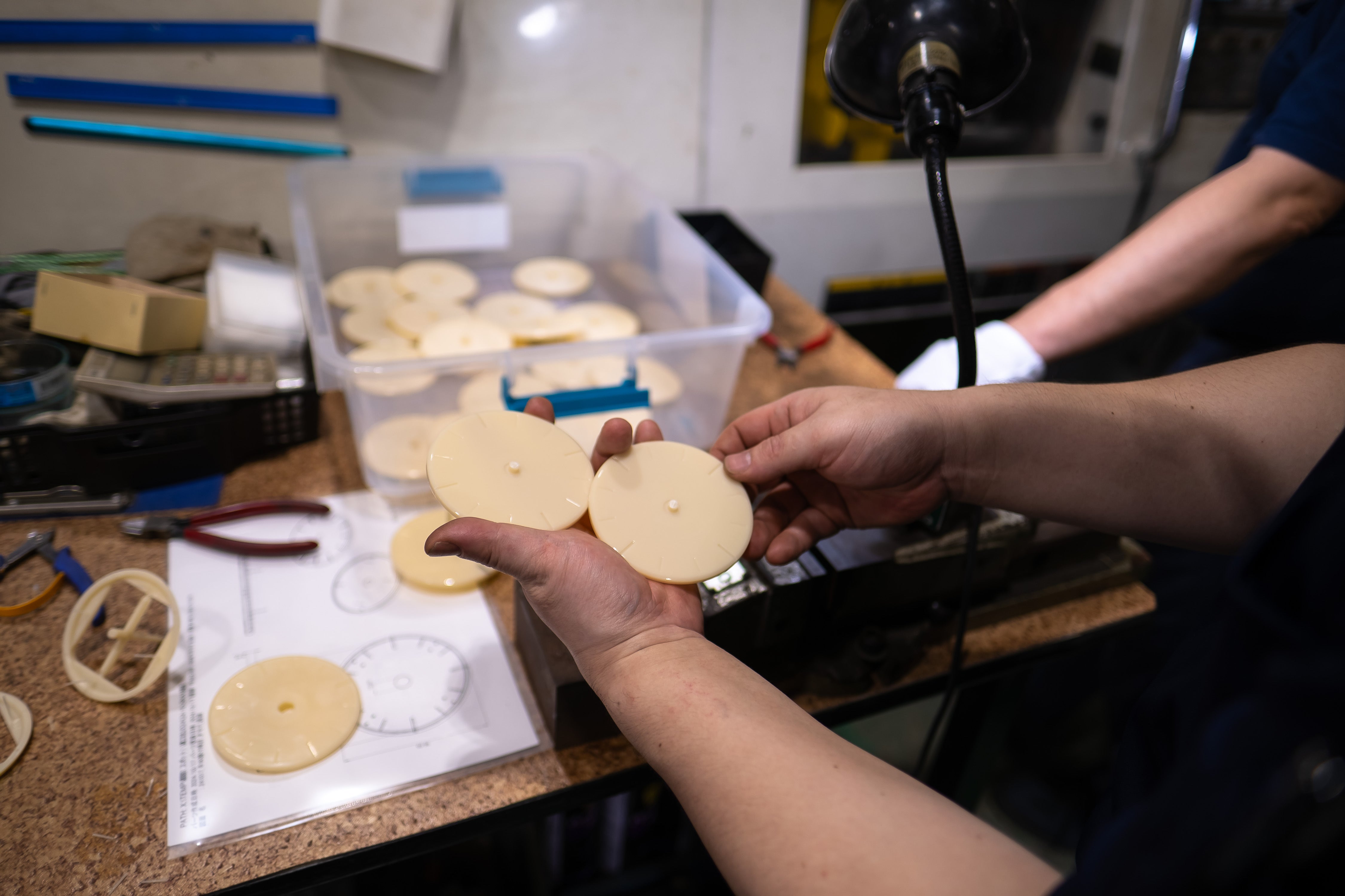 金型を製作し初回の樹脂成型の場に立ち会いました。樹脂成型品も数回プロトタイプを製作し、最終版の製作となります。ちいさな掛け時計はクラファン開始前、ABS樹脂の切削加工による製作を想定していましたが、想定以上の資金が集まったことで金型製作という選択肢が生まれました。