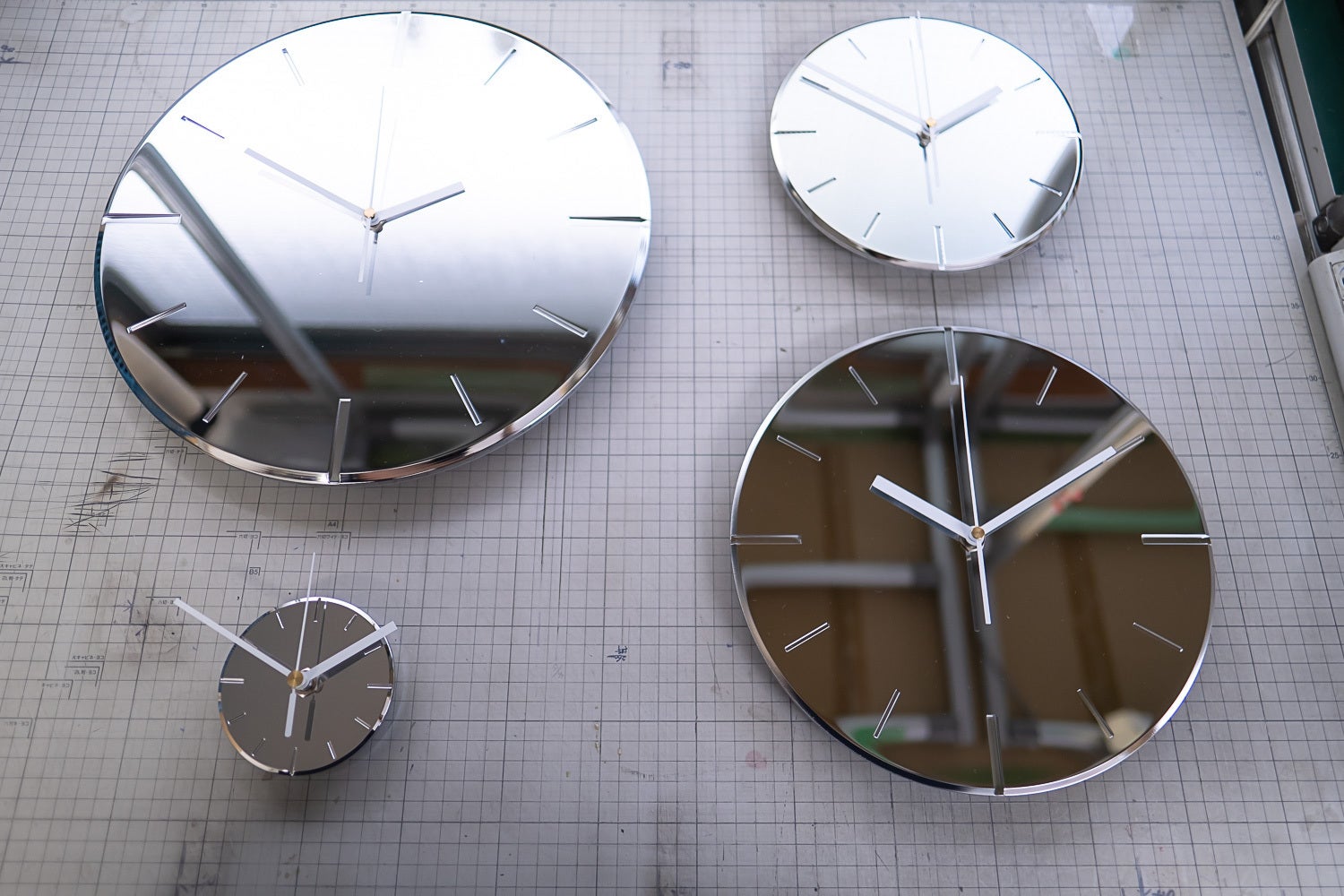 φ200以降の掛け時計は、裏面は鏡のようなフラットな仕上がり