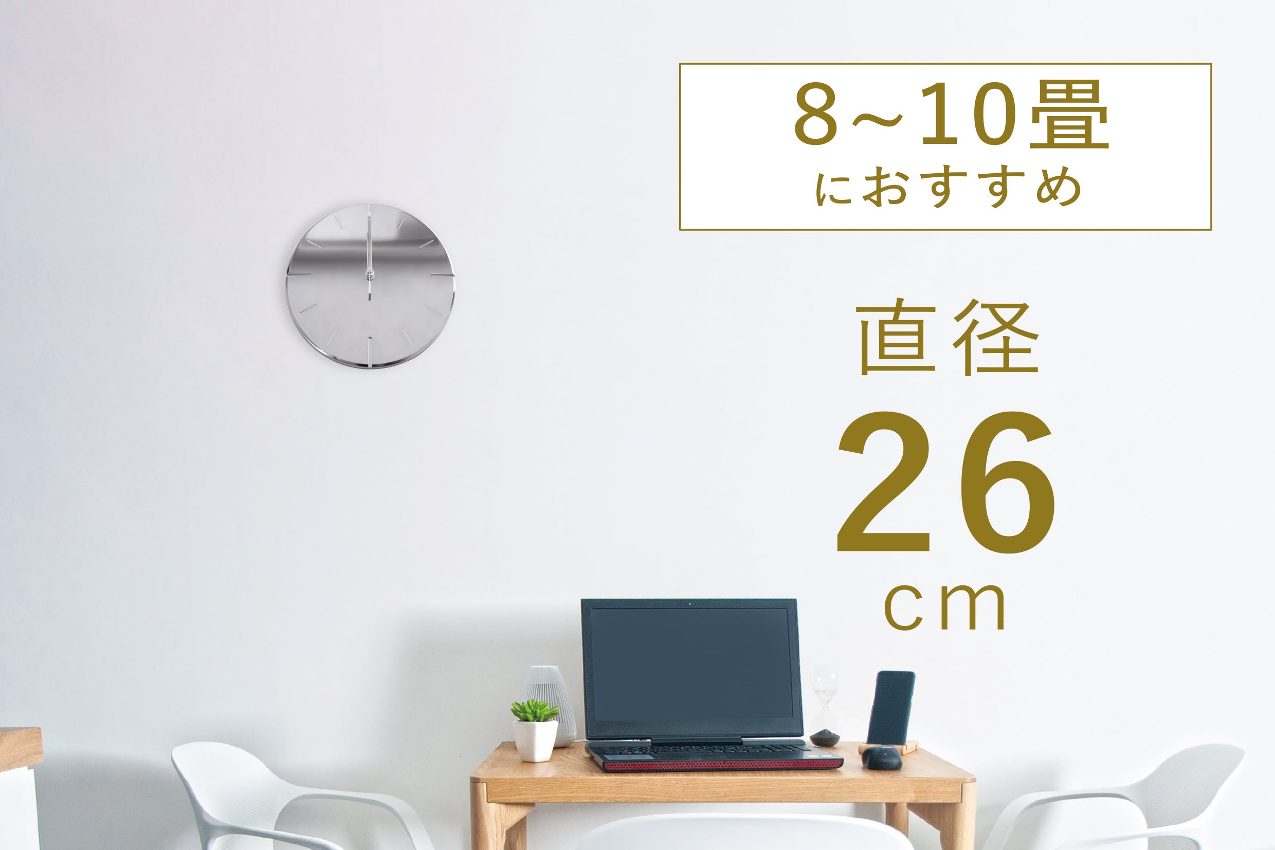 従来の「ちいさな掛け時計」と「おおきな掛け時計」の中間に位置するサイズをご用意いたしました。個室やワンルームのアパートなどで程よいサイズ感ではないでしょうか。