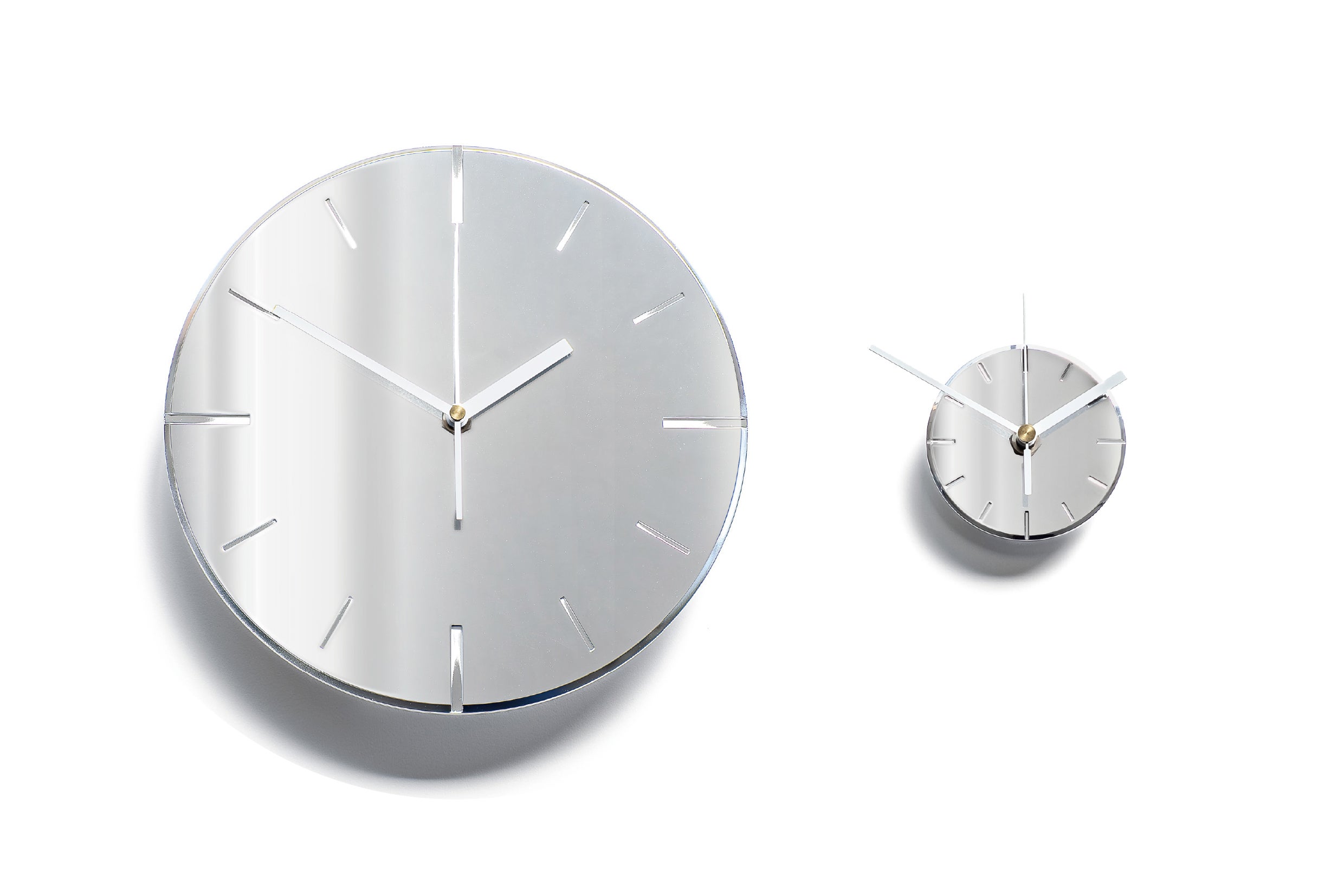 鏡面反射仕上げの時計はひかりを反射して輝き、光を拡散するので朝、昼、夜と差し込むひかりによって雰囲気を一変し、針を読むというよりも感覚的に時間の変化を楽しむことが可能です。