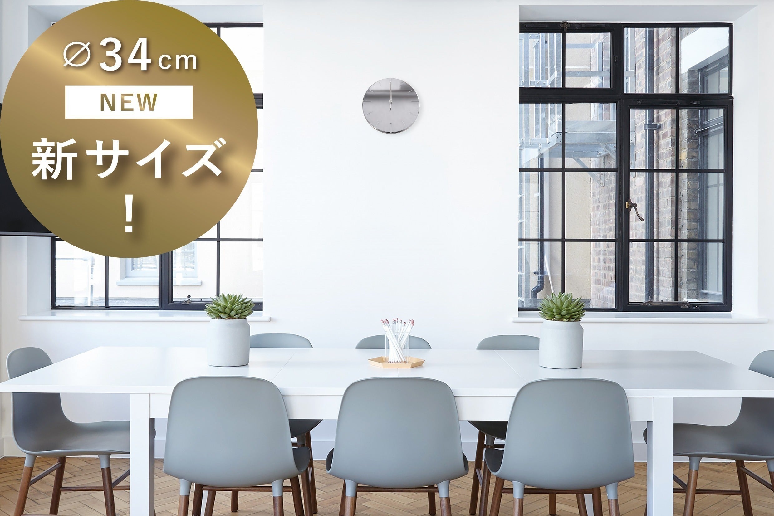 「おおきな掛け時計」よりもひと回り大きなサイズを新たに投入。ちょっと広いスペース、広めの一軒家や、オフィスでの使用に耐えるサイズ感かと思います。