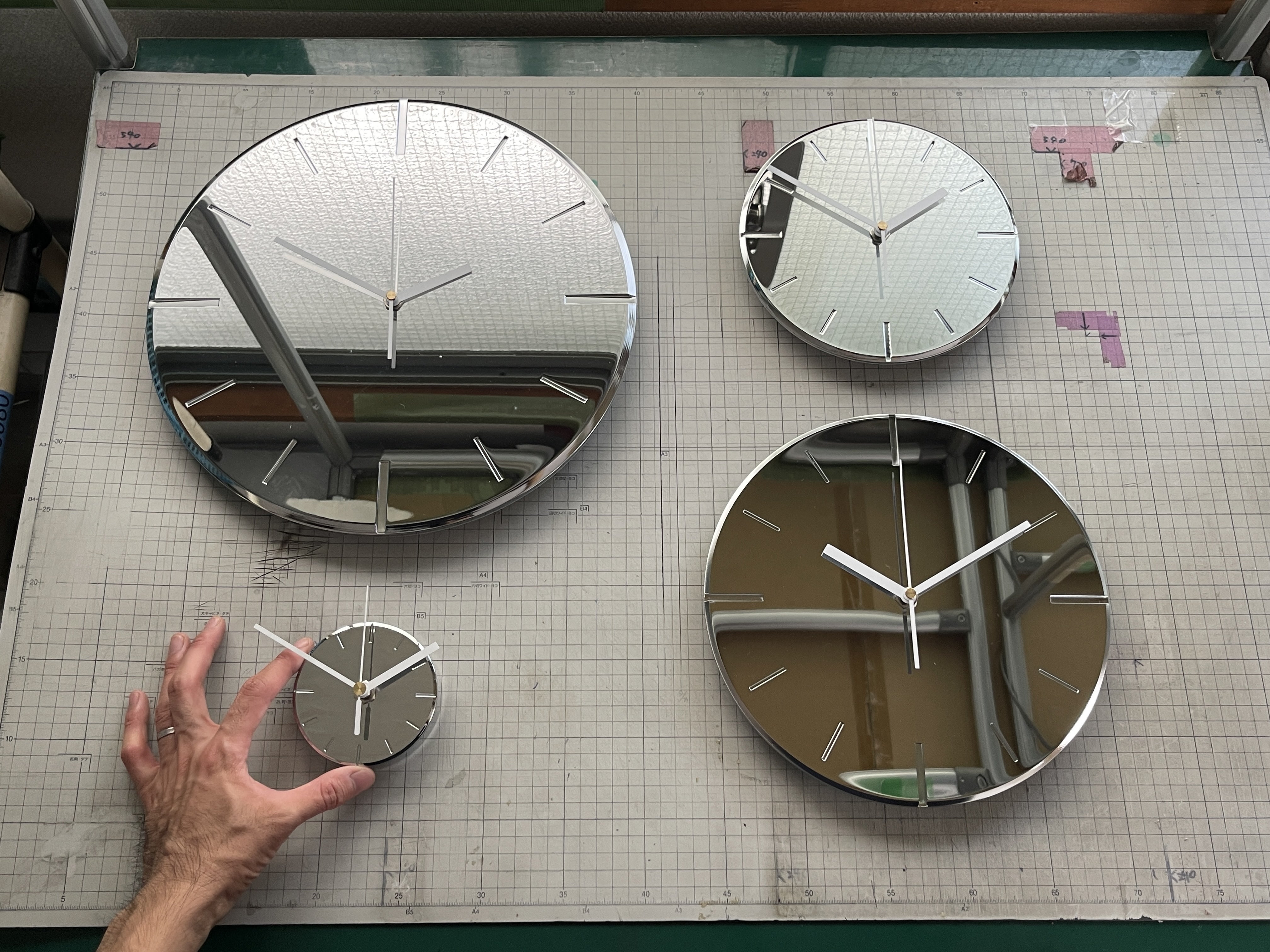 針はまだ完成していないため、26cmサイズのものを使用していますが、新作の20cmも34cmもとても良い仕上がりになっています!